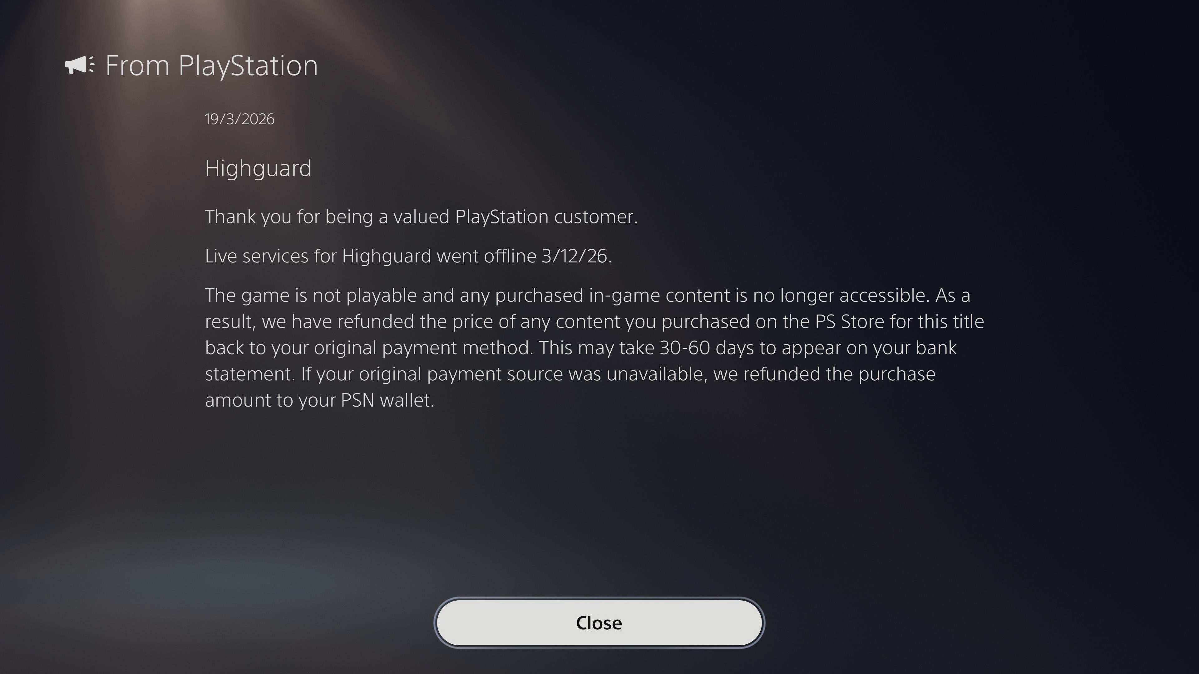 I dont understand? Soo u got refund cuz the game highguard not playable anymore?