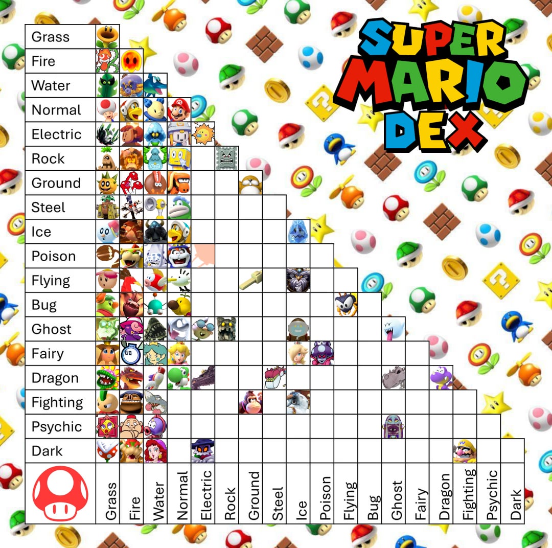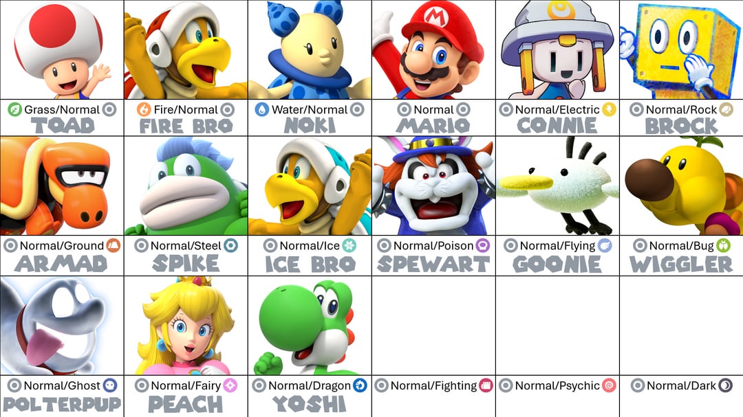 REMINDER: While I'm allowing multiple variants of the same species, I encourage everyone to try to be as unique with your choices as you can. Mario has a large character roaster, and I would love for this chart to represent that in some capacity.