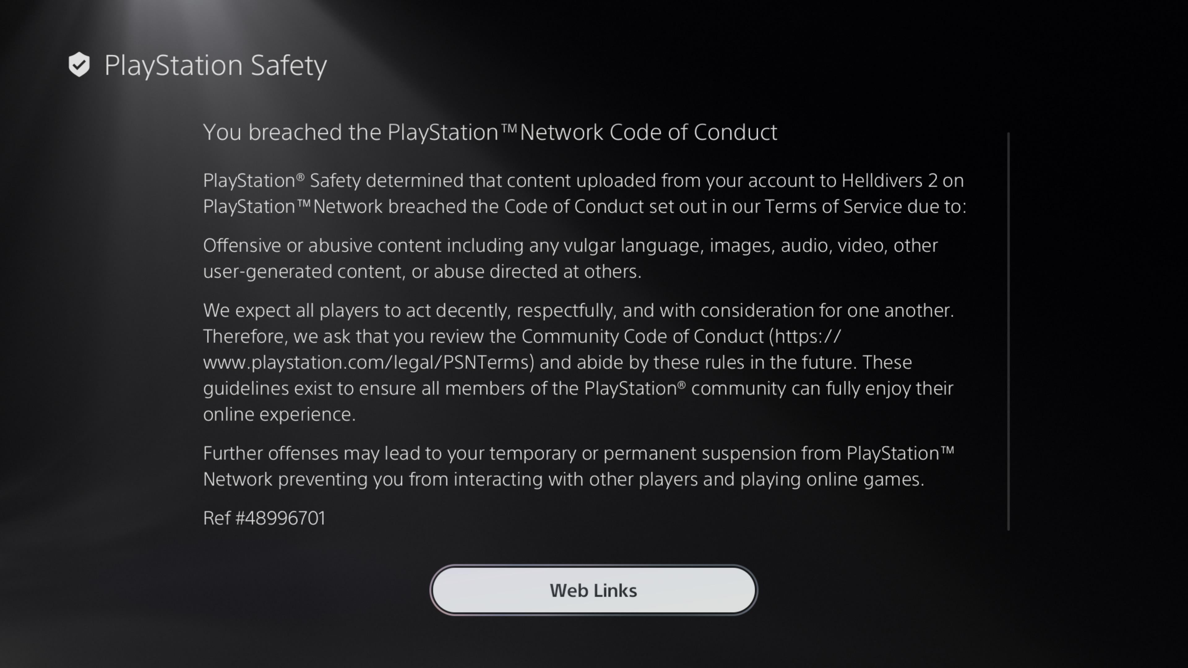 I was sharing a clip with my friends that I got a while ago on helldivers, and I guess that's against the rules now, which is odd since they also shared their own clips and didn't get a warning.