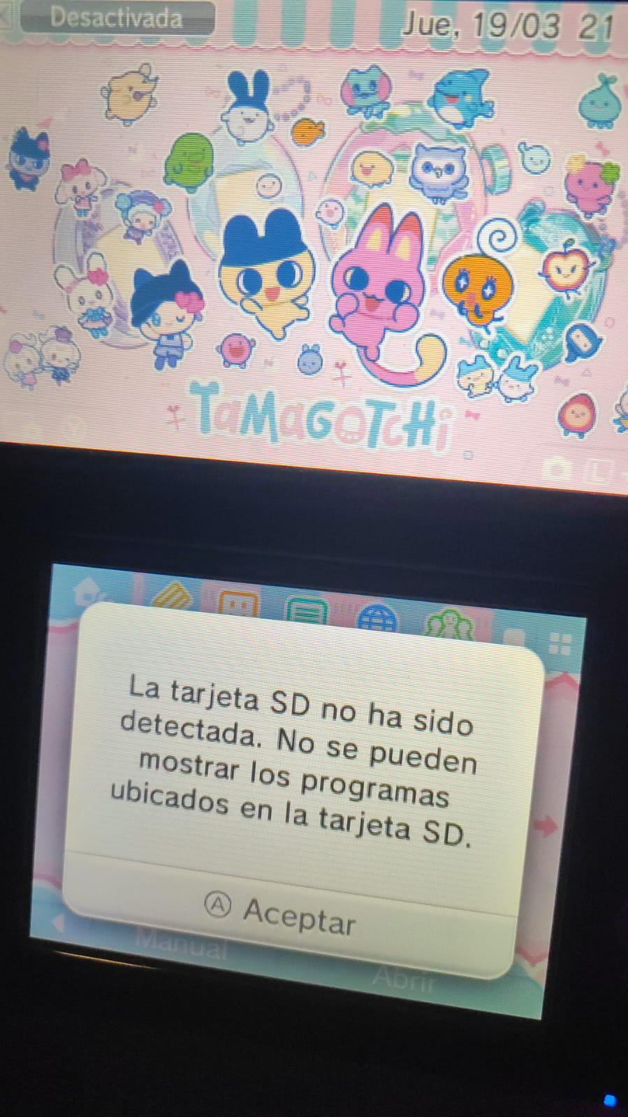 Hi everyone. I've been having problems with my 3DS. At first, the console would turn on, but the screen stay black. After many hours, I followed a guide and was able to fix it; however, I'm still having problems. Every now and then, the console displays this error: it says the SD card hasn't been detected. After this happens, the console restarts and reads it. This happened to me twice today. I remember when I first started having the problem I mentioned, it began like this: showing that SD card error on the screen, then turning on, and then the screen going black. I need advice on what could be causing this message. The microSD card is new, but the microSD-to-SD adapter isn't. I'll buy a new one tomorrow to see if that's the issue. Could the console's card reader be malfunctioning? I'm reading your replies carefully.