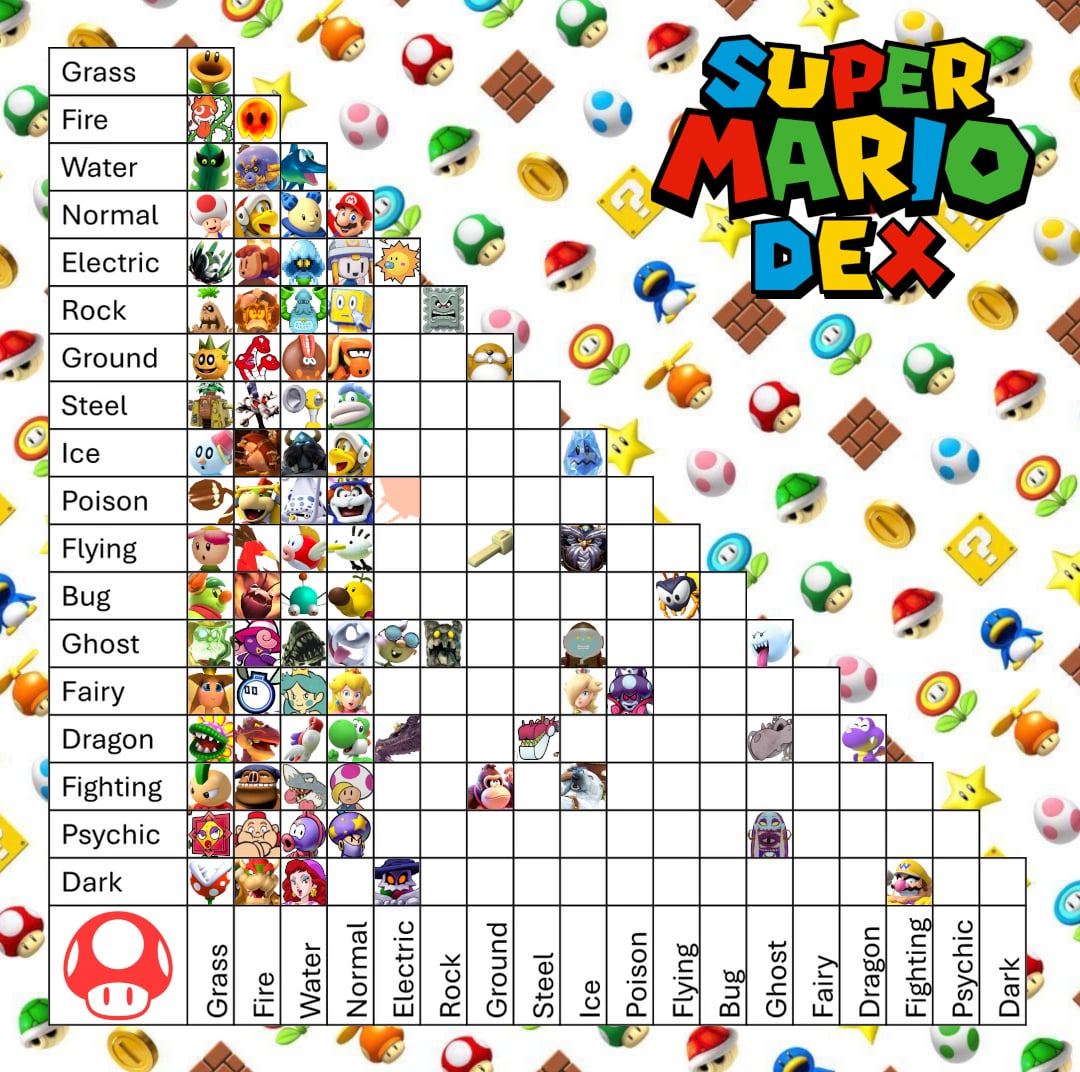 REMINDER: While I'm allowing multiple variants of the same species, I encourage everyone to try to be as unique with your choices as you can. Mario has a large character roaster, and I would love for this chart to represent that in some capacity.