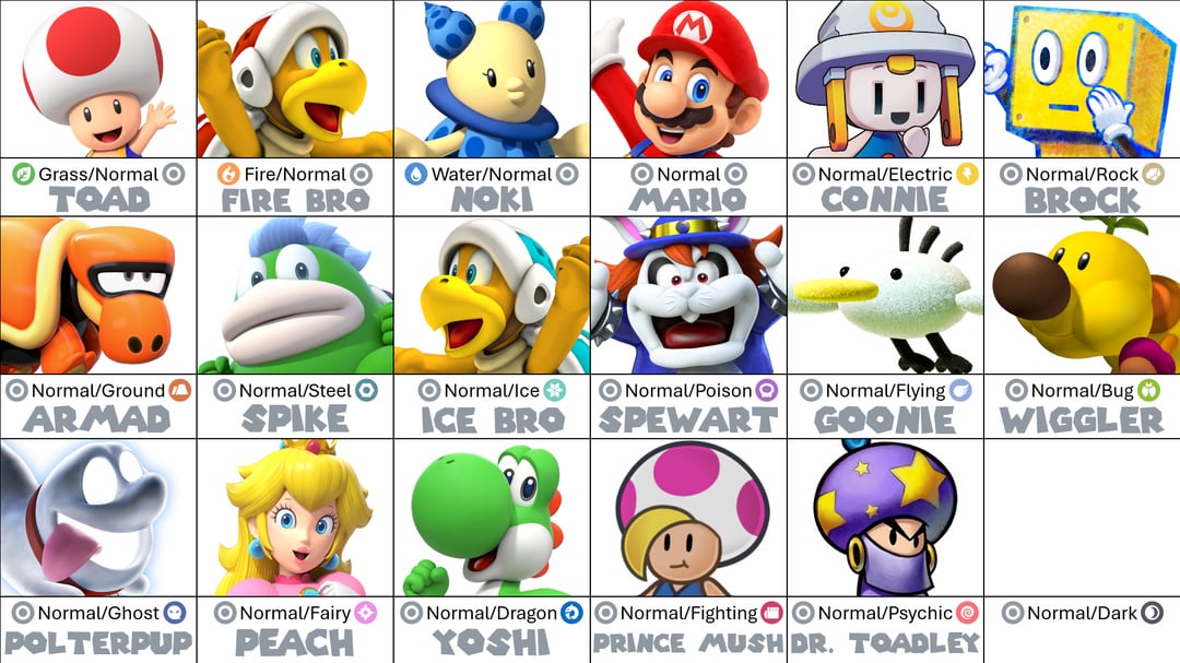 I mean, goombas are enemies, but are also about as basic as you can get – perfect normal/Dark types.