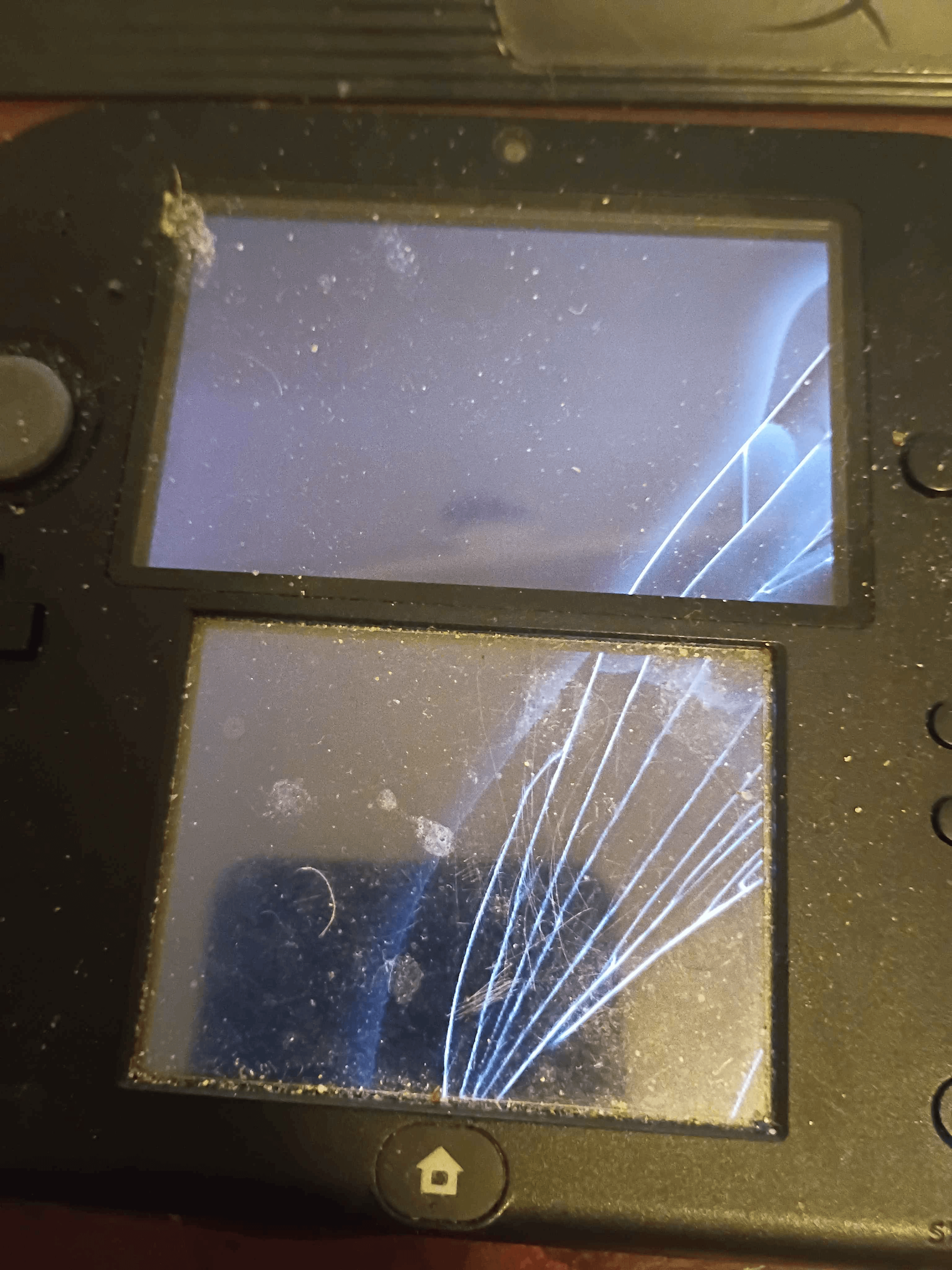 my 2DS has a broken screen, as seen in the picture, I don't know how the screen was broken, but I need help with figuring out how to fix it, I've never had to do this type of thing before so I am quite lost..