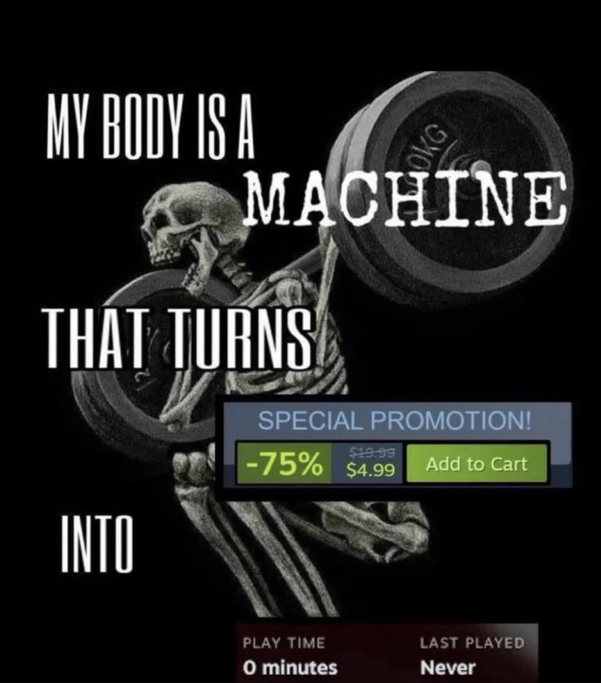 Nothing, I don’t want more games. I am playing through a story focused game as well as a roguelike, and have Getting Over It, PC Building Simulator, KOF 13, and Mega Man Legacy Collection as games to get back to. I also have 10 unplayed story driven games to play in the future. There’s also Geometry Dash and a few others, but these are mostly games you don’t really finish. Maybe after I have finished most of these I’ll buy more games.