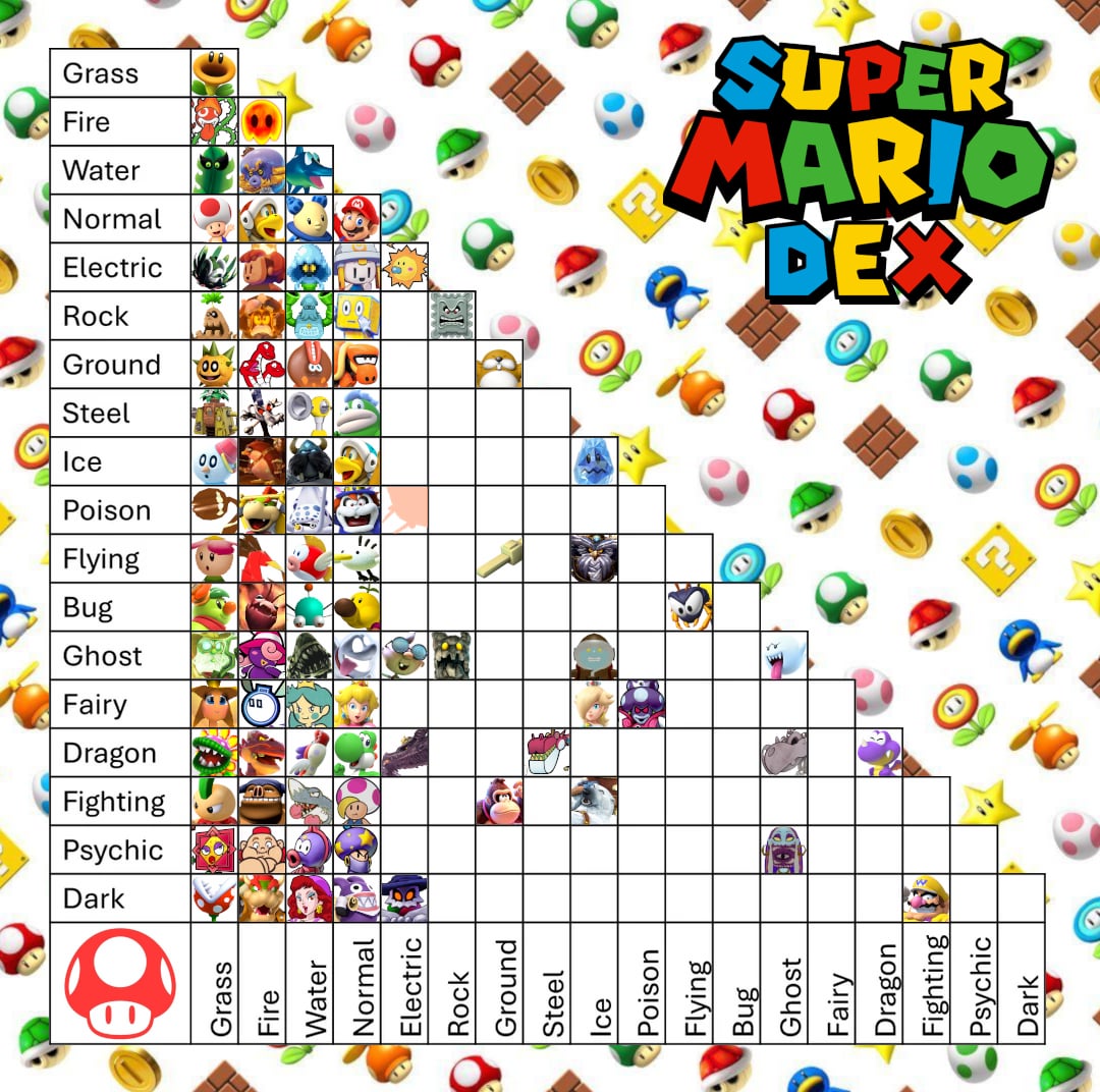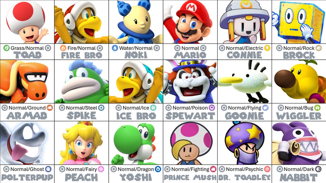 REMINDER: While I'm allowing multiple variants of the same species, I encourage everyone to try to be as unique with your choices as you can. Mario has a large character roaster, and I would love for this chart to represent that in some capacity.