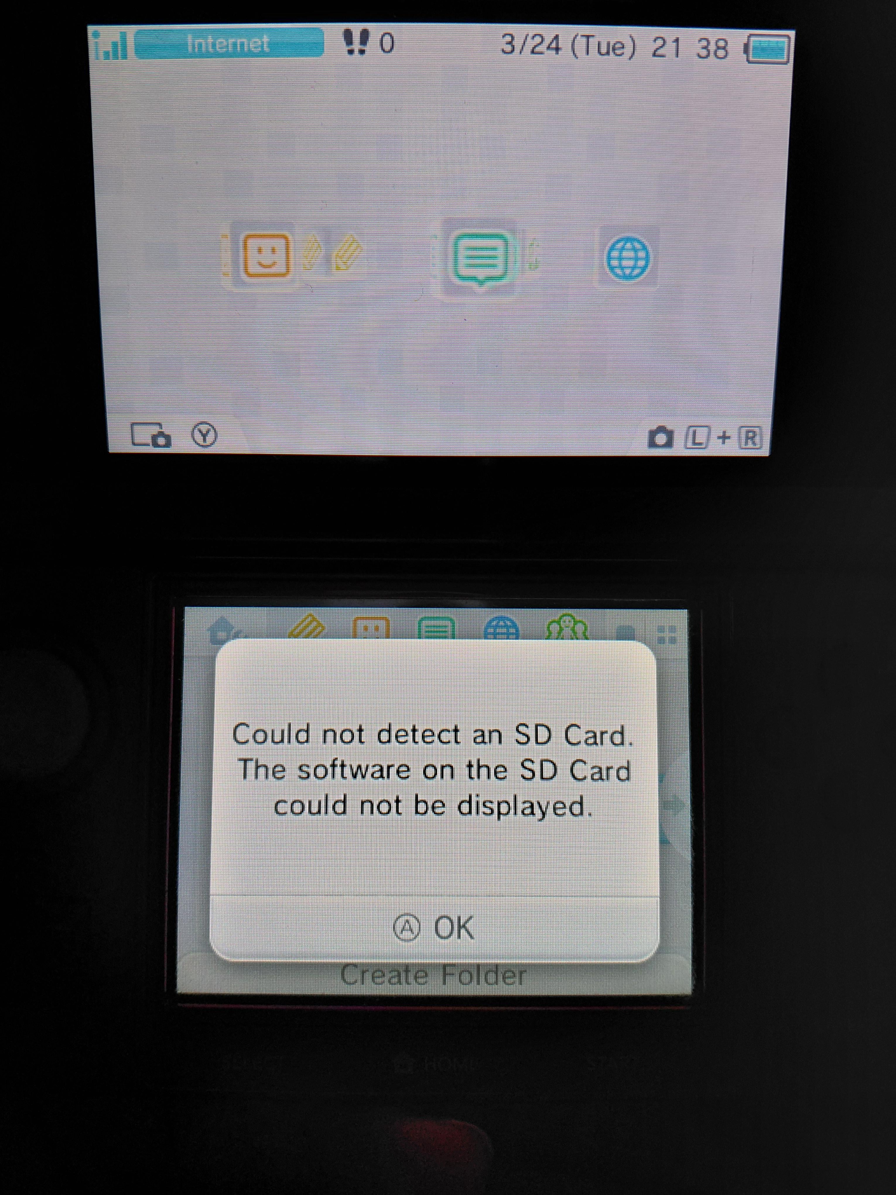 The system worked quite long, for almost 2 years, but 1 day when I normally started the 3DS this issue showed up "Could not detect an SD Card."