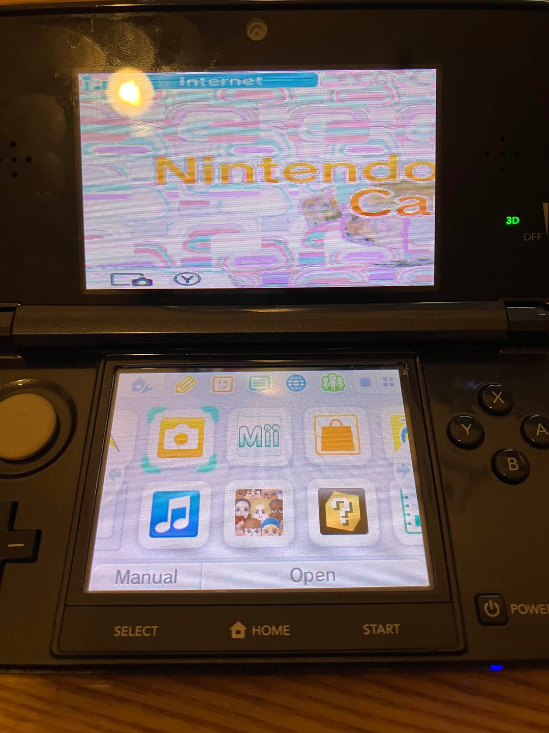 picked this 3ds up used. everything works fine except that the top screen is extremely glitchy, looks pinkish and is overly sharp. home menu is shifted a little to the side but fixes itself when toggling sleep. im guessing that its not getting enough voltage or smth like that? because in fbi and safe mode my screen looks fine, like normal. in games and home menu – not so much. much help appreciated!