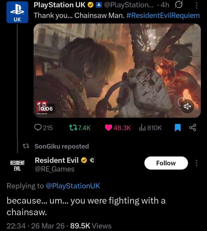 Dang even Resident Evil is slandering on Chainsaw Man