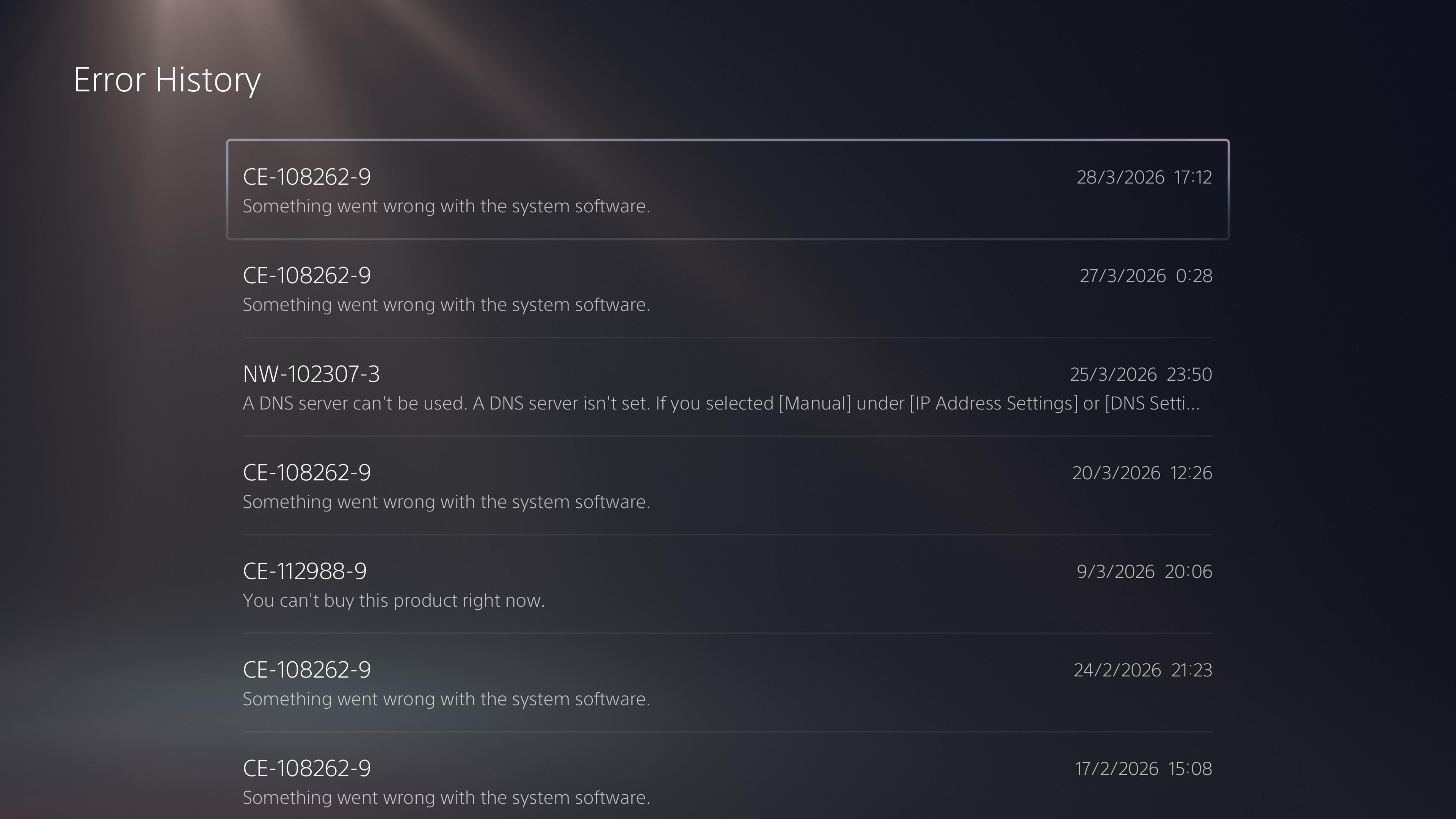 I surely cannot be the only one who keeps getting CE-108262-9.