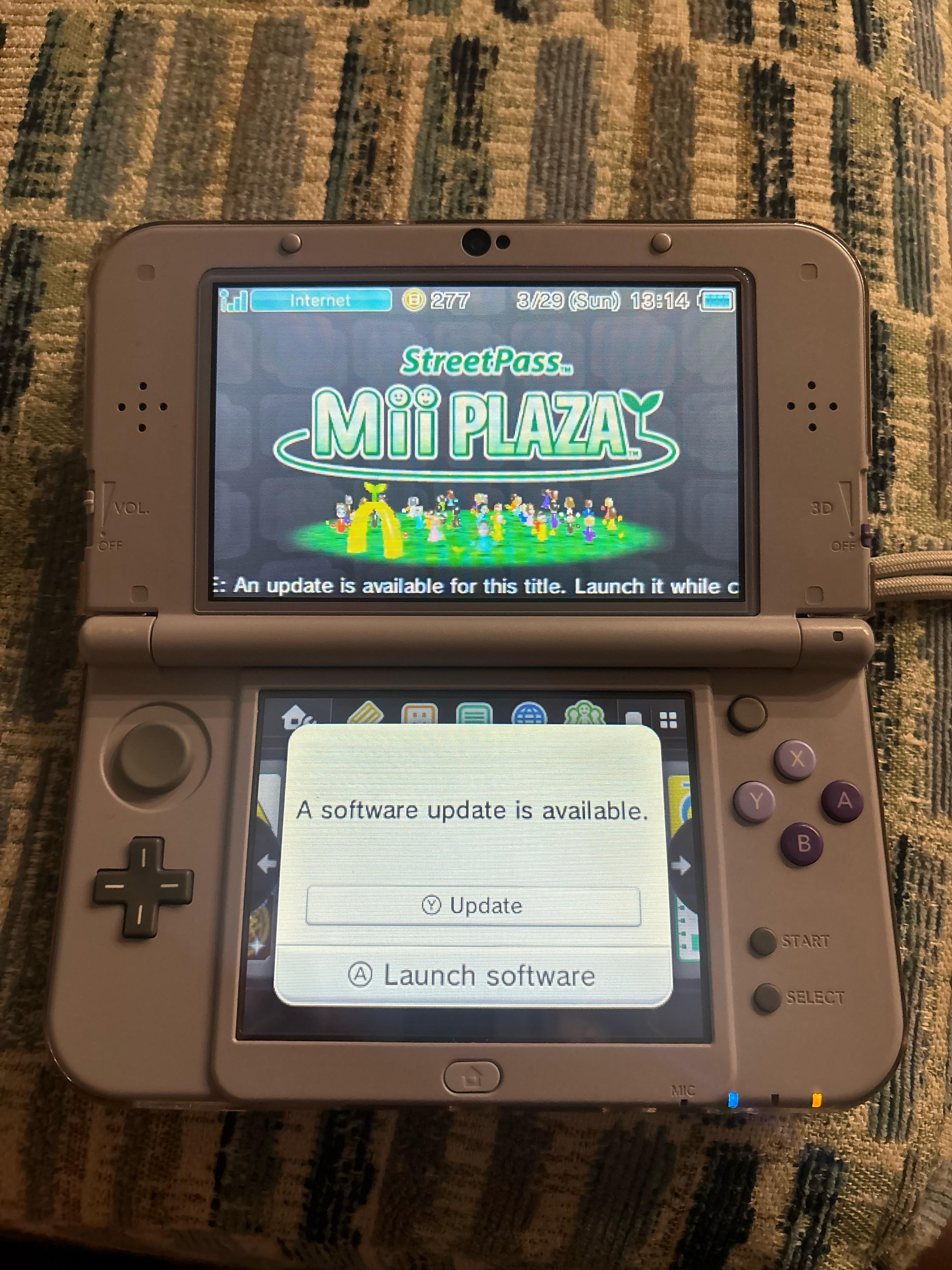 I’m pretty sure I have connected to the internet and logged into streetpass as I was able to get someone’s tag in the mall sometime in 2025. I’ll be honest I haven’t loaded up streetpass in a while but I would think maybe just maybe at least once this year, again I have been connected my device to internet and it has yet to be homebrewed so it is 100% stock. But I was going to load into streetpass and it says there’s an update? How? I already used this application on wifi previously and I don’t think there were any recent streetpass updates? any ideas as to why this happened to me?