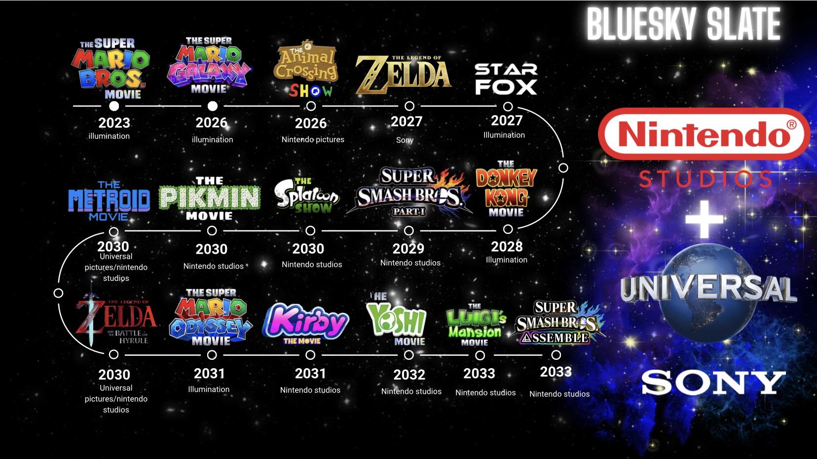 To the inevitable slew for the Nintendo visual content I decided to make a blue sky outline for for what that cinematic future could look like, inspired by different leaks, scoops, my personal wants and official articles now I’m not saying this is 100% gonna happen like this but something similar.