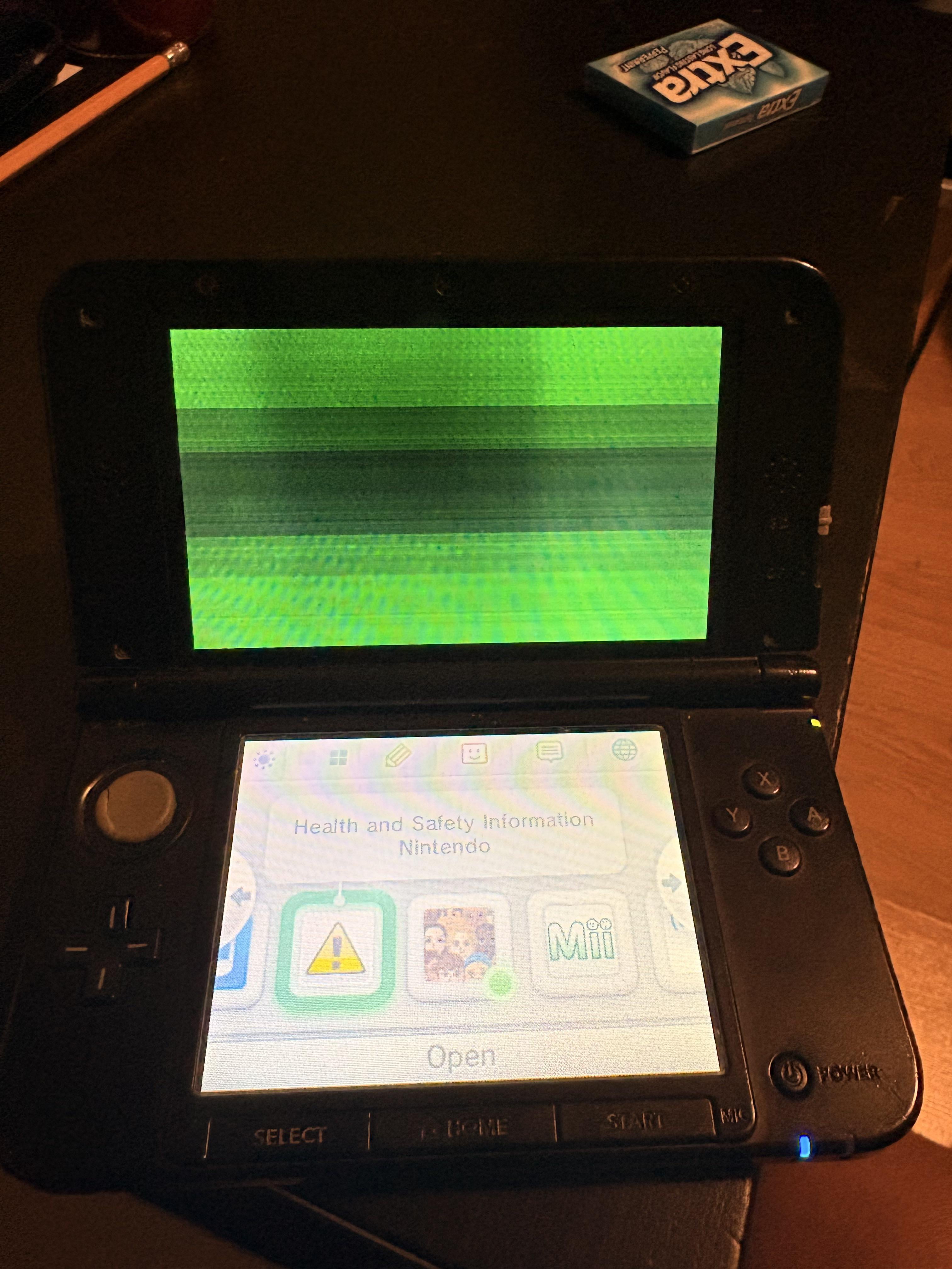 I recently acquired two Nintendo 3ds Xls . One of them is the older model, and the screen is just green and will not display anything, I wanted to see if anyone had experienced a similar thing and if it was just about replacing the screen. I also have a new3Ds Xl and that one doesn’t register inputs on the touchscreen, it displays but will not register input. Any help would be appreciated. I included a picture of the older model with the screen issue.