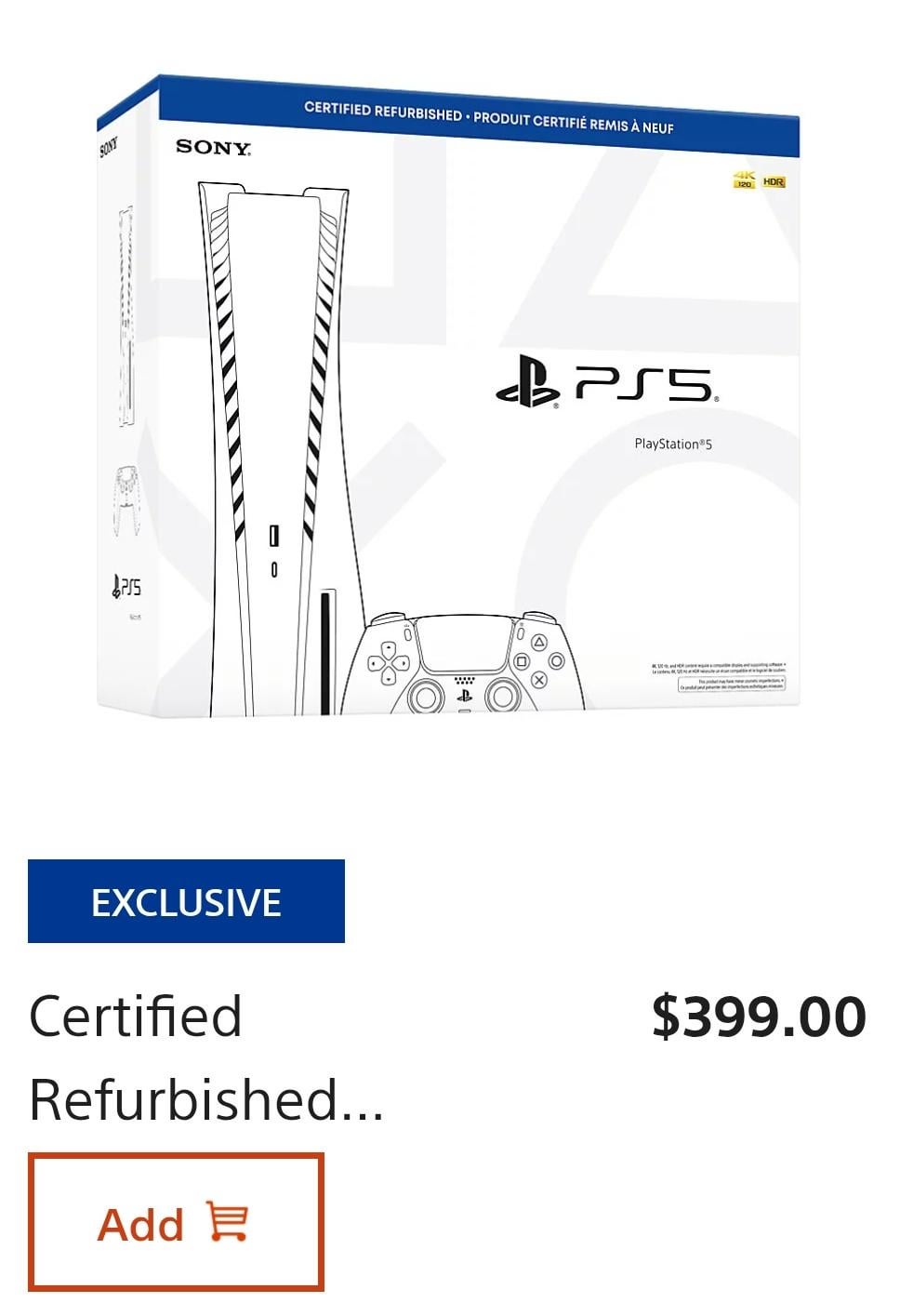 EasternAZ on March 31, 2026 8:28 pm 3 or 4 days ago I bought a new (not refurbished) digital version from Playstation direct for $399 You need to get the one that comes with the Fortnight game code.