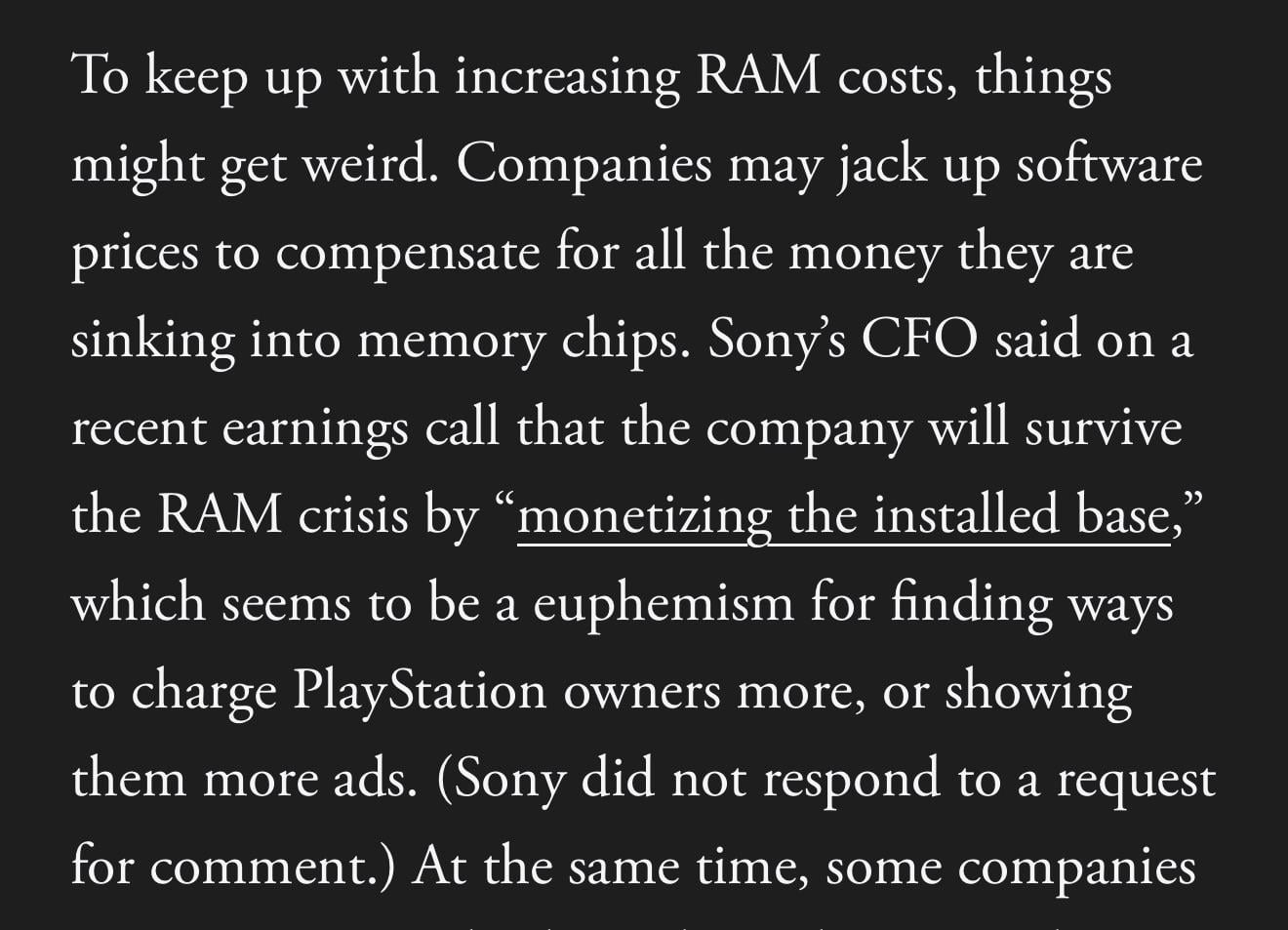 I thought the point of increasing the console price, was to keep up with RAM prices? Or did they just do that because they can?