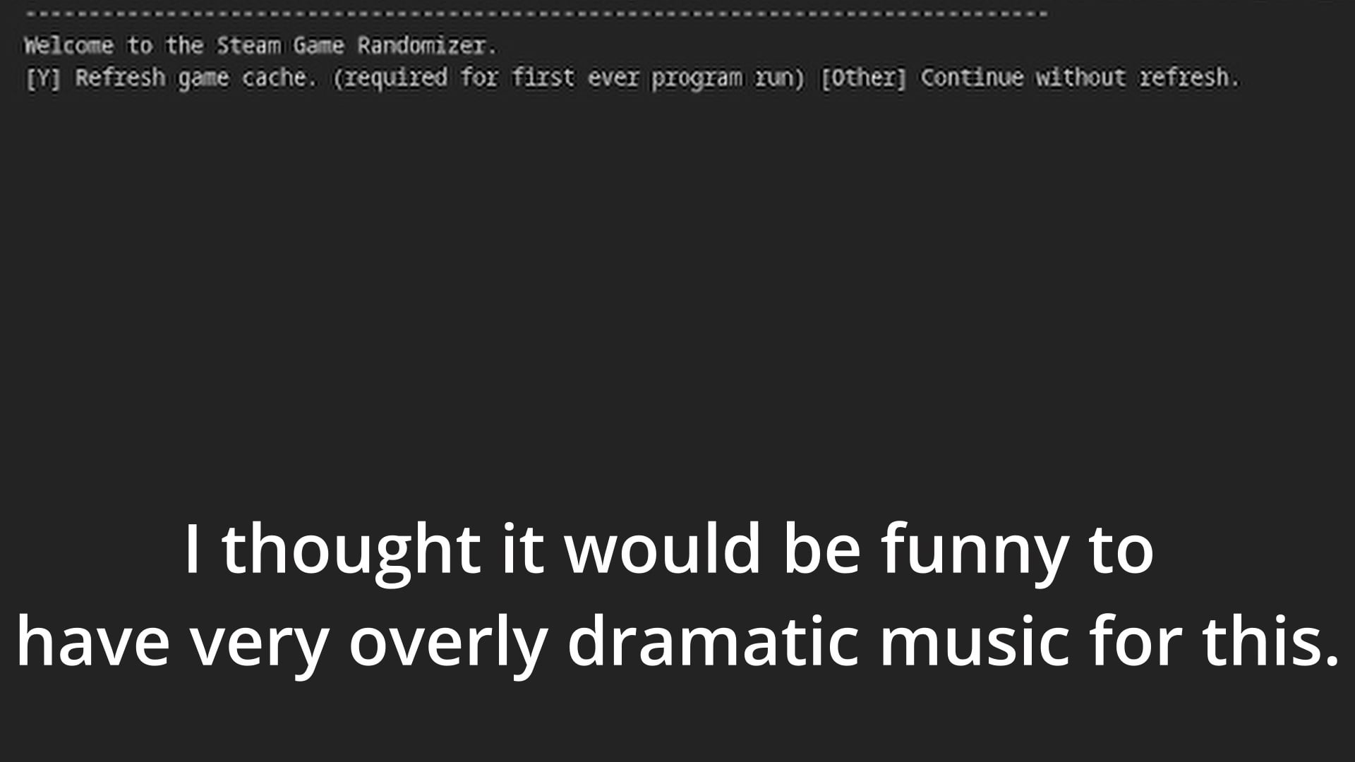 Hello everyone! I made this steam game randomizer, that runs in your terminal. It pulls a list of your games, and then shows you the game, with an image, your playtime, and your last played date. However, unlike other randomizer websites, it allows you to exclude games you don't want to see, and run them directly from the program, as well as it can get a list of your games from the API while your account is set to private. It runs locally, caches your game list locally, and it runs very fast and can be set up to open just like an app on your PC. I think it's pretty useful. Check it out for free on github! https://github.com/blu2ns/SGR-steam-game-randomizer/tree/main