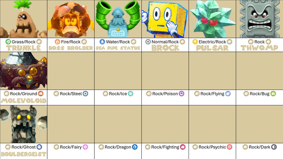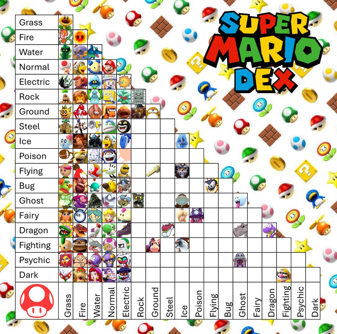 REMINDER: While I'm allowing multiple variants of the same species, I encourage everyone to try to be as unique with your choices as you can. Mario has a large character roaster, and I would love for this chart to represent that in some capacity.