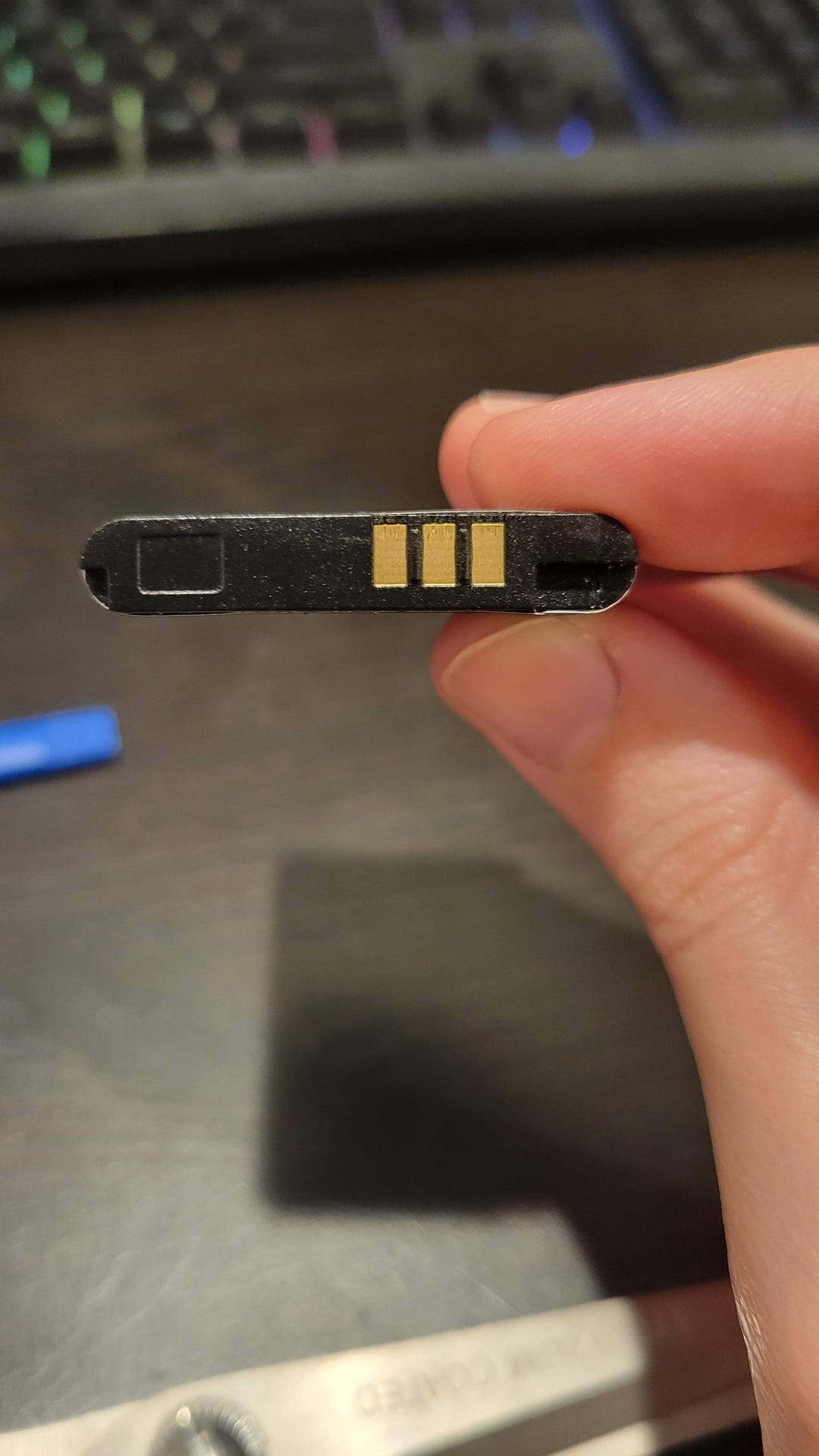 Photo of how the connectors look with the case and without, as well as the battery itself to show it isn't bloated. I just wanted to replace my broken circle stick and this is how my 3DS thanks me đ