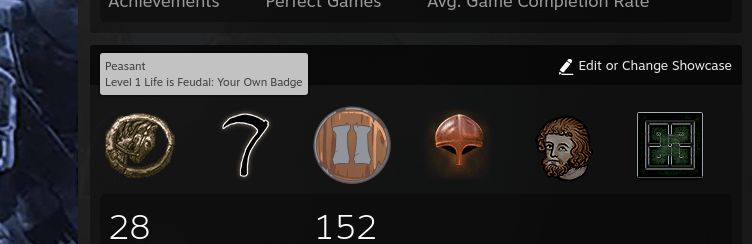 I'm trying to fill out my badge collection with "Peasant" badges. Curious if anyone knows of any badges other than what I have already. I already have Both Chivalry badges, Life is Feudal your own, and Kingdom Come Deliverance (I know serf not peasant). I've tried checking some databases, but as far as I could tell you could only search by game, not badge title.