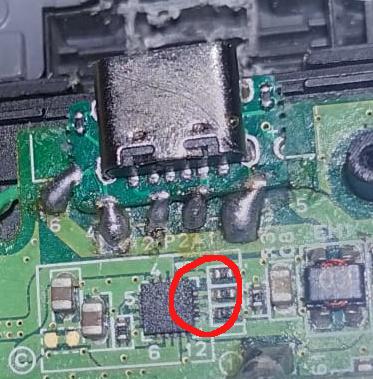 I tried redoing my soldering work and trying charing it, I noticed some smoke coming from the red region, or maybe it was just pin 3, I really hope I didn't mess up anything maybe it was just some soldering paste or my poor soldering job.
