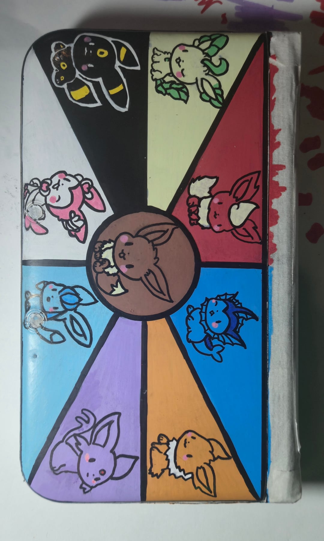I've started to paint the old 3ds i got as a kid, the eeveelutions are some of my favorite pokemon and decided to make those as the top plate. Also thinking about putting their typing symbols with them to fill out the space but unsure. And still trying to figure out what to do on the back, I'm thinking about making it mimikyuu because they're my other favorite pokemon. I'm using acrylic markers and zebra pens for lining.