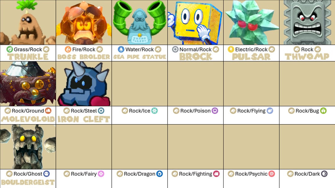 REMINDER: While I'm allowing multiple variants of the same species, I encourage everyone to try to be as unique with your choices as you can. Mario has a large character roaster, and I would love for this chart to represent that in some capacity.