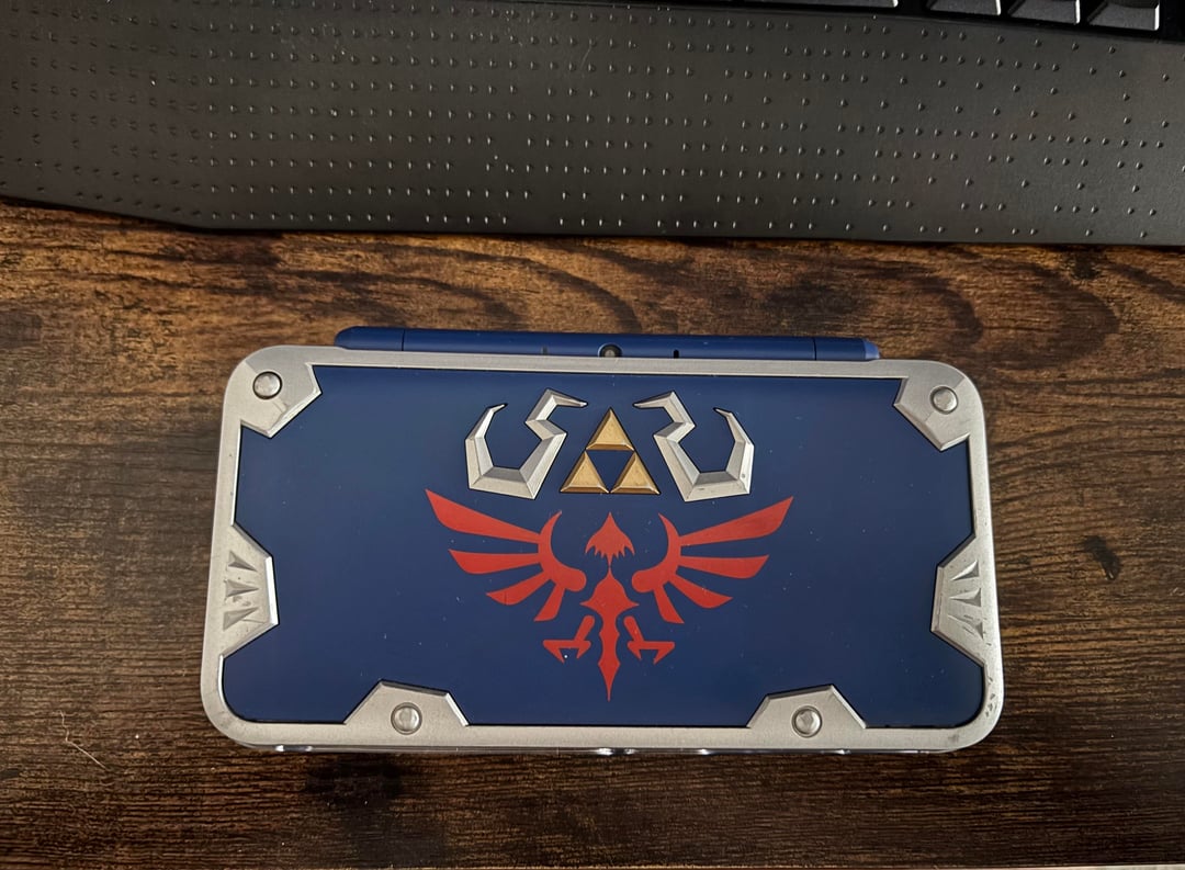 I’ve seen people stretch a TPU case onto the top of the Pikachu and Pokeball 2DSXL’s, but this Hyrule one has stuff sticking up around the edges so not sure it would work. If not, maybe there’s a phone case out there that could fit the top half?