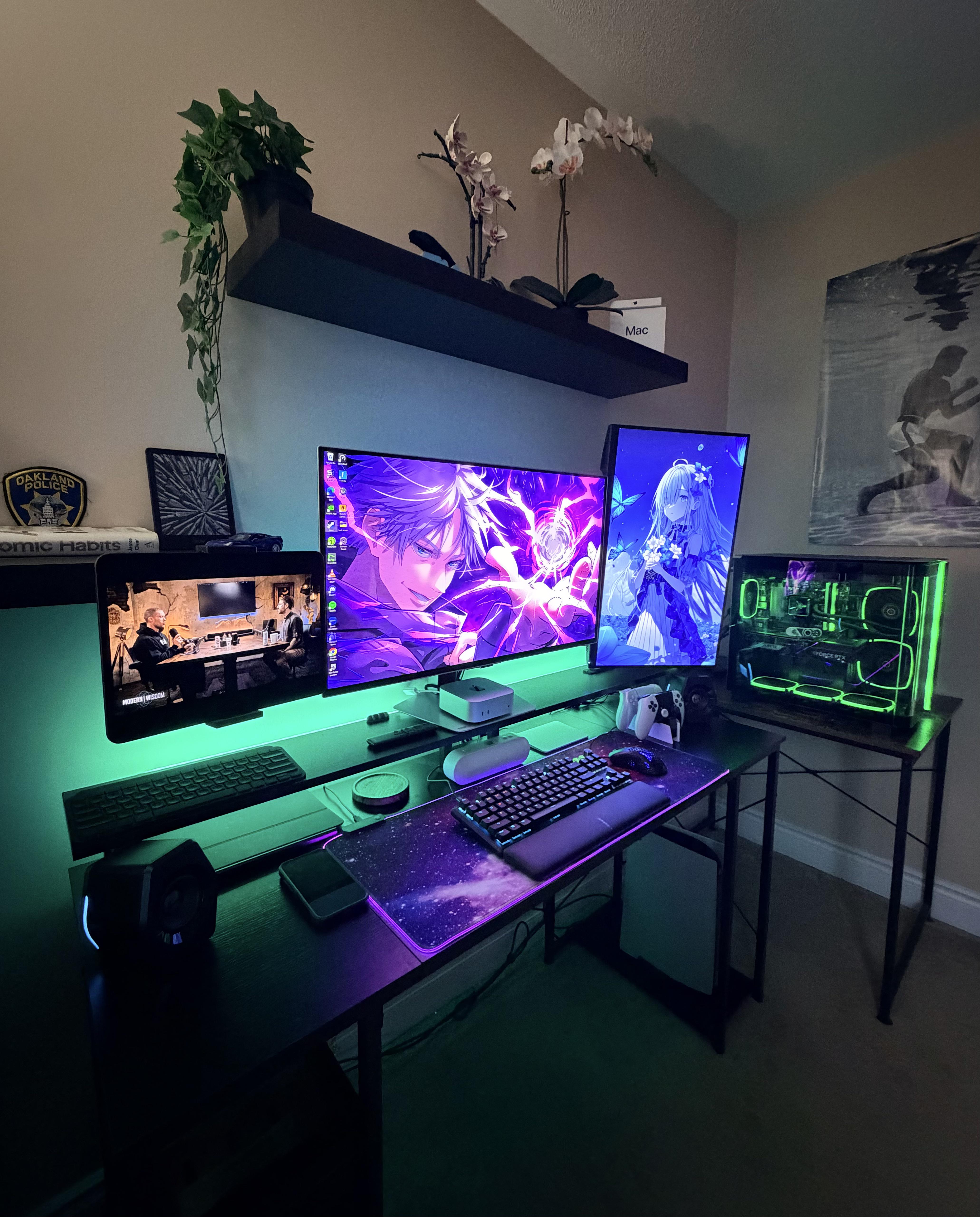 Current set up until I can get the two Ikea Alex drawer pairing with a Lagkapten tabletop combination. Just splurged on the OLED & rtx 5080 rig, so that won’t be for a while!