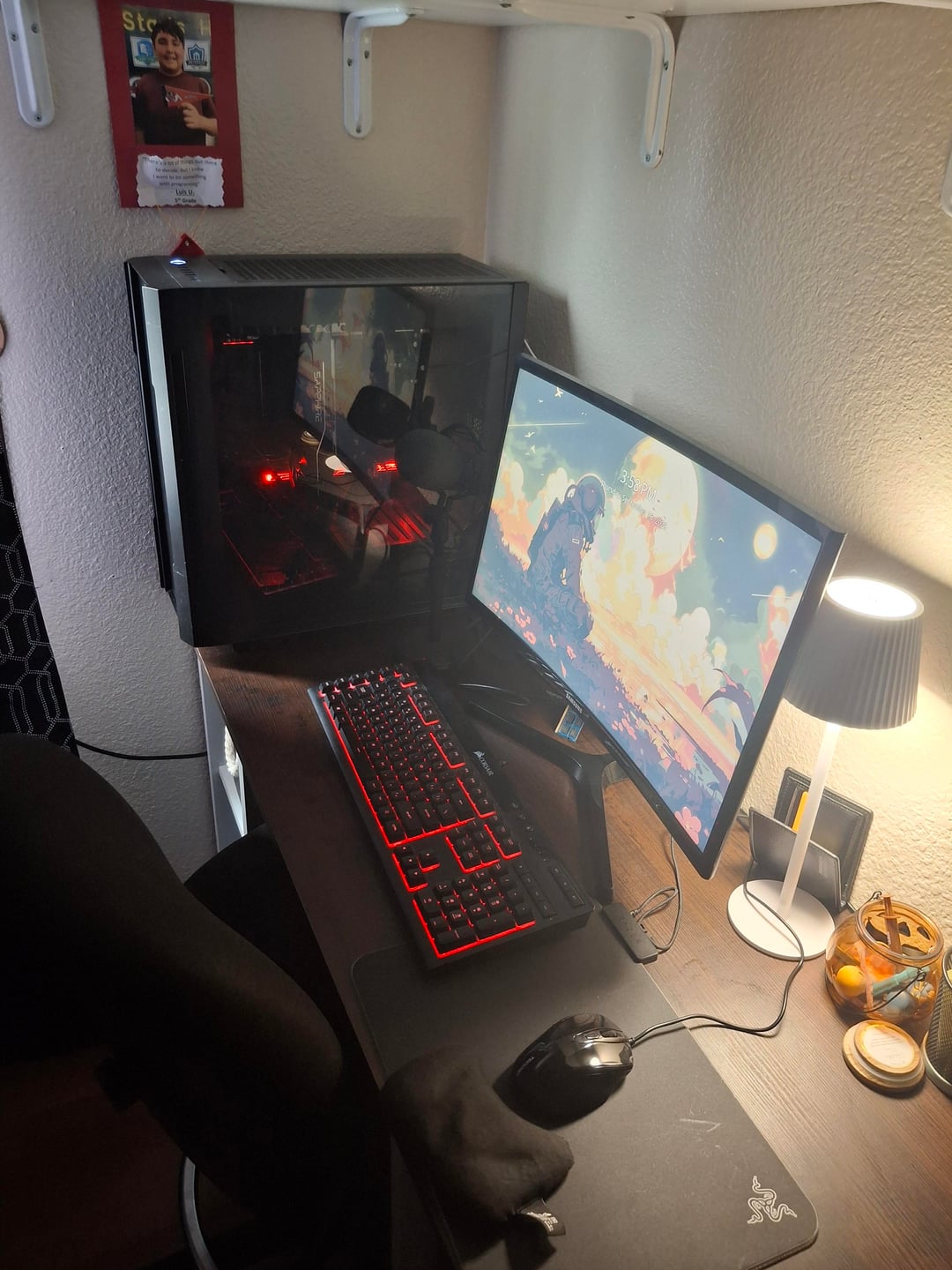 First image is how it is now, second image was before I has a decent chuck of change i can throw to my desktop, it has a 5700x and rtx 3070, a fun fact being that the rtx 3070 is used by 2.10 % of steam users in march, with 32gb of ddr4 3200 mhz and asus b550, while before it has a 2400ge rx 570 4gb 16gb of ddr4 2666 mhz and awful ab350 gaming 3 still am4 but much better then basically an i7 4770 as a cpu in 2025