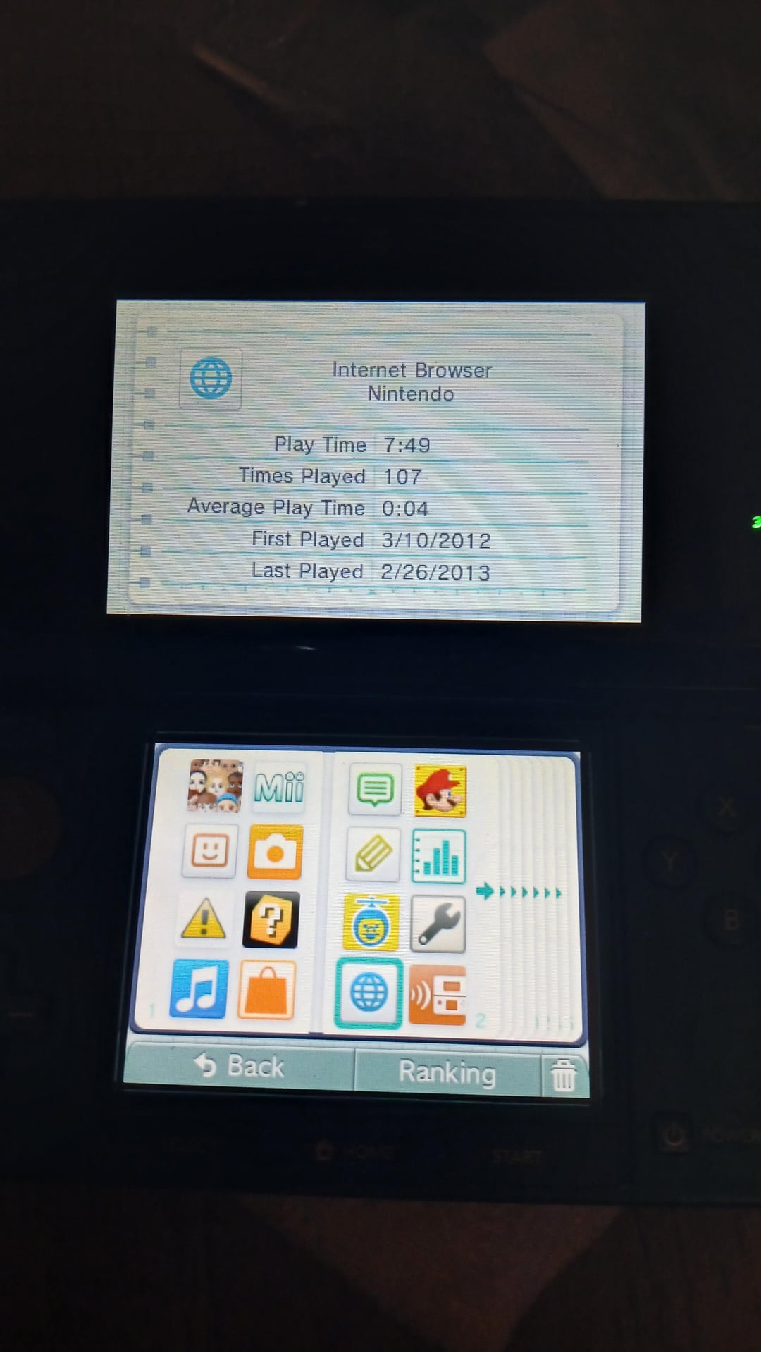 AFAIK, I believe I got my first 3DS in February 23rd, 2012 and February 26th of the following year was when it started messing up and I barely used it. (Ignore the 2011 dates, I think the date and time reset at some point when I tried to use it)