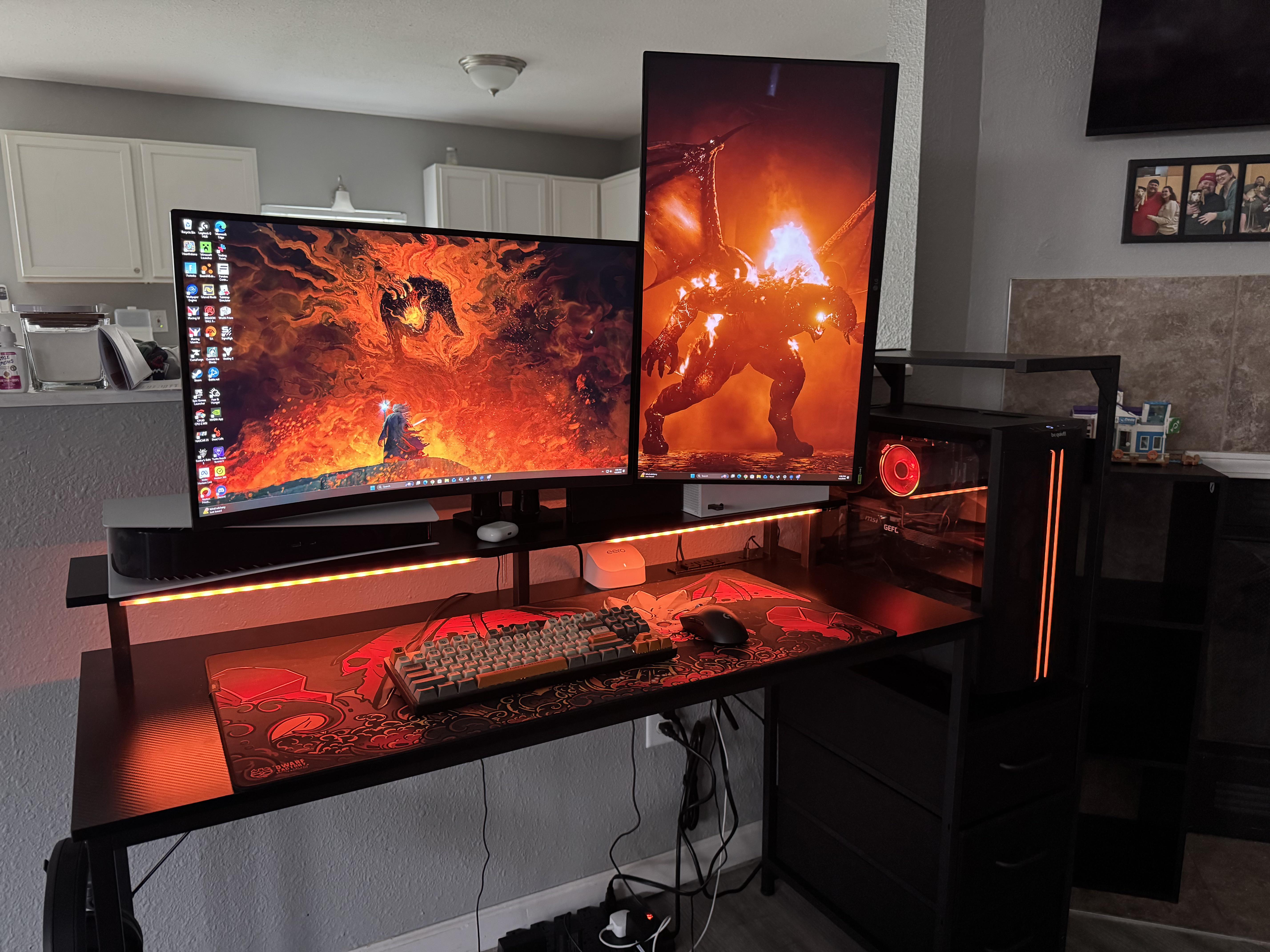 This is my first time having a desk that isnt a joint desk tied to my wife, and first time having dual display. Besides cable management, any suggestions on how to make the set up more fun or different?