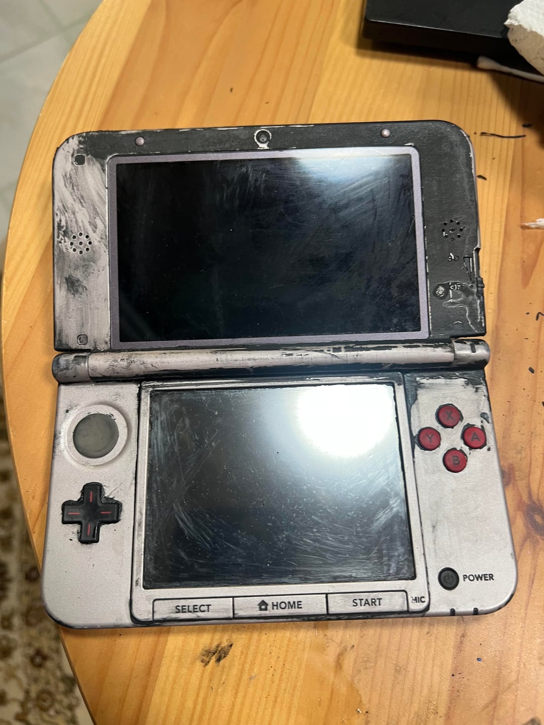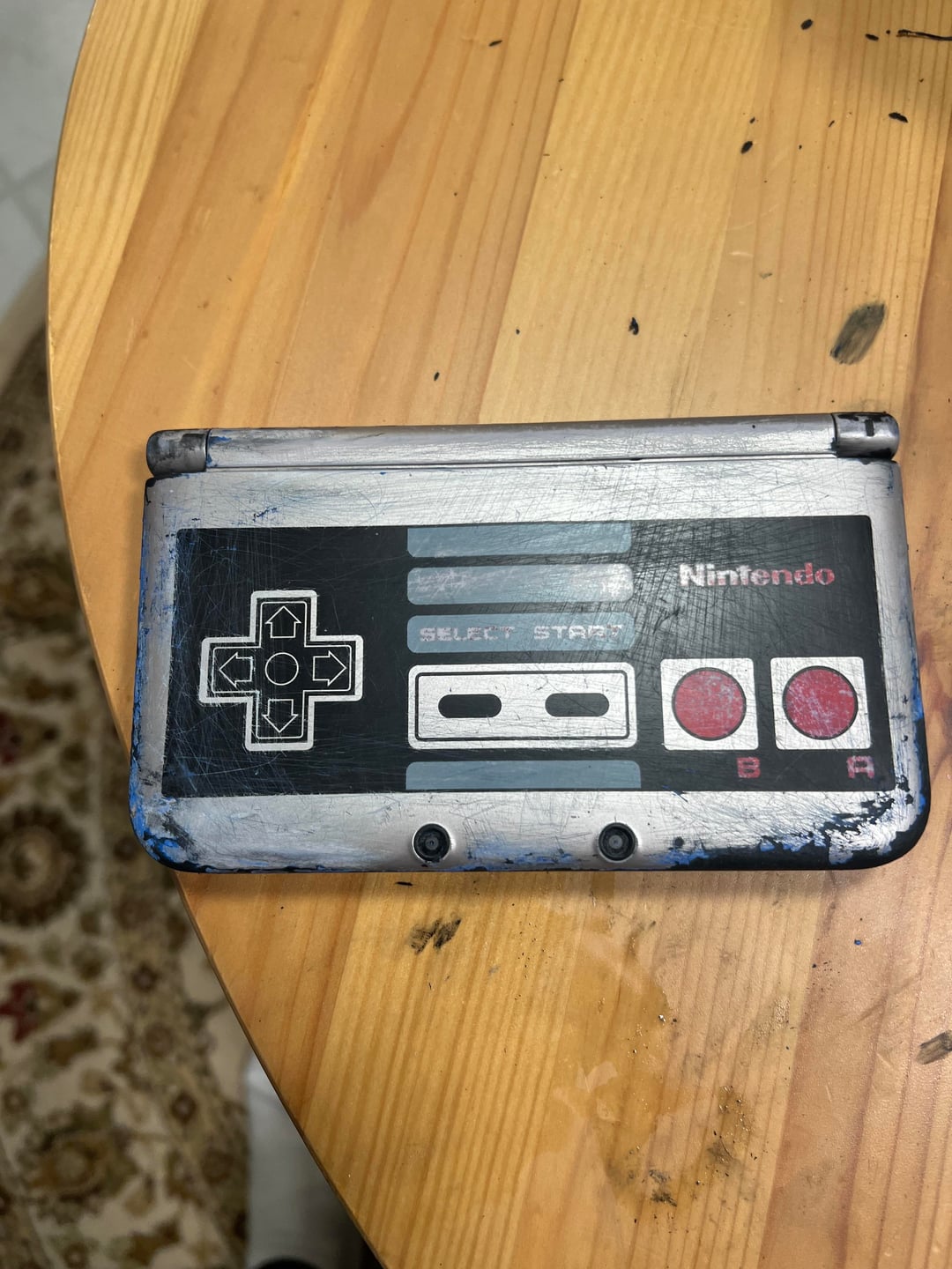 Found this 3ds on fb marketplace. The thing is totally covered in paint, but i noticed it had those red nes buttons