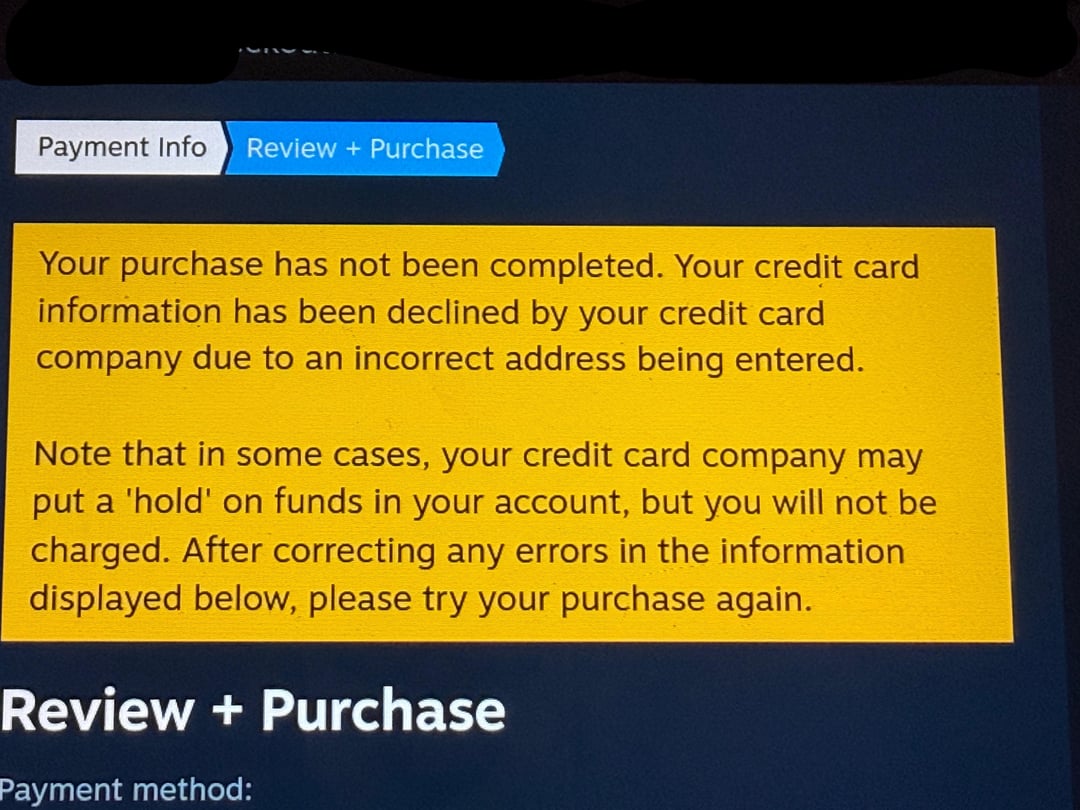 Can you confirm your billing address matches the address your back has on file? That’s what the error is.