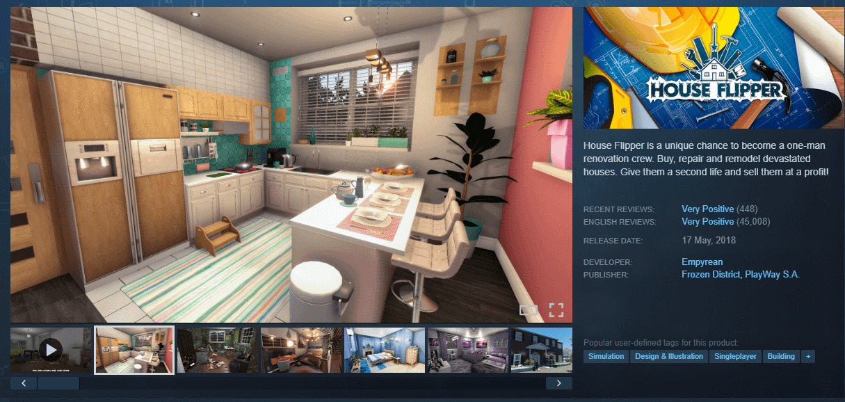 salad_tongs_1 on April 3, 2026 5:52 pm Link for the lazy: https://store.steampowered.com/app/613100/House_Flipper/ Spoiler alert: >!game is misleading, not one single house in the game does a flip!<