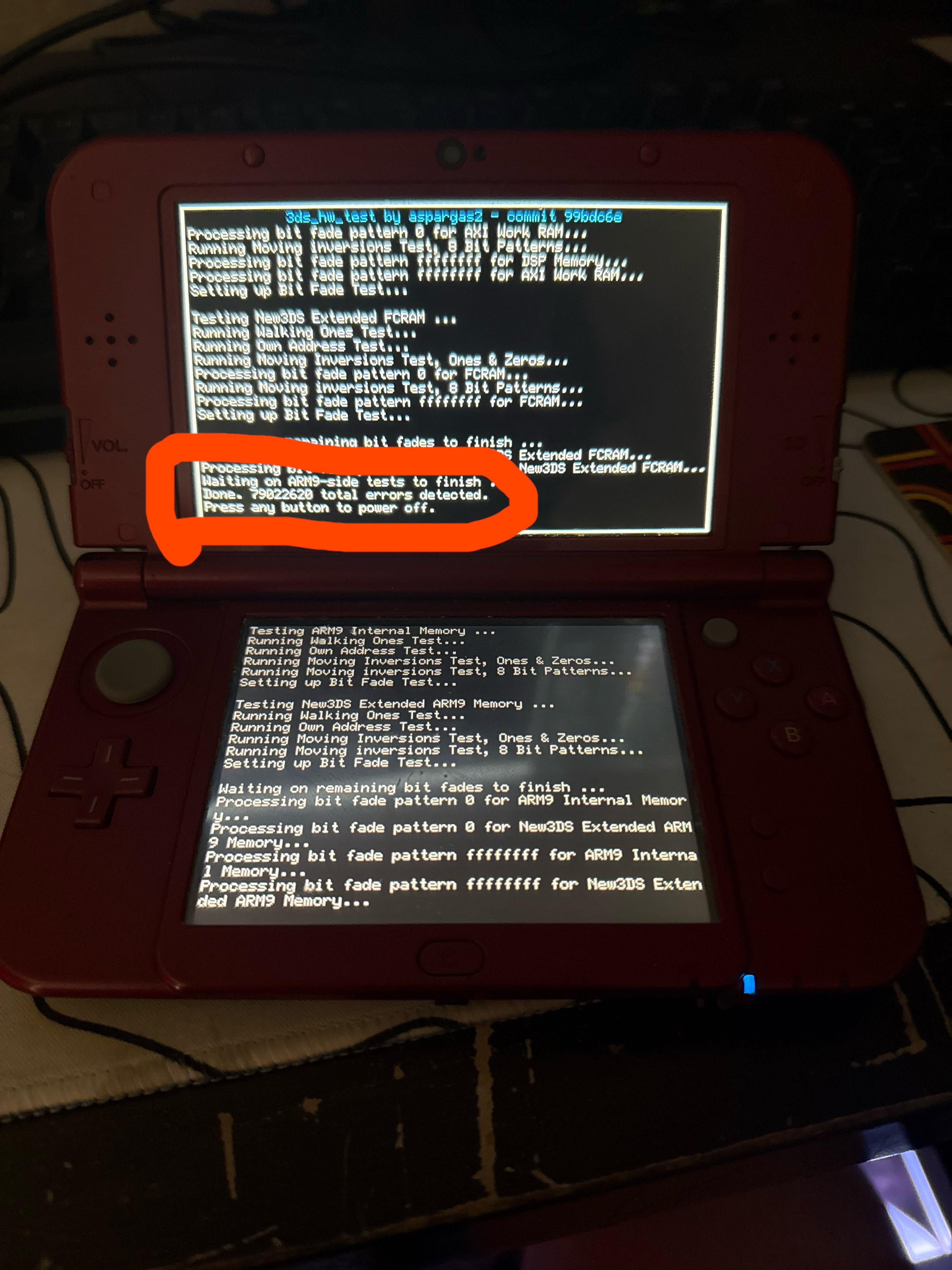 I ran the 3ds hardware test after repeated errors. I just replaced the Luna files for the newest ones after getting a blue and red flashing light error. I tried again for the same result. Posted by dihdihdihdi