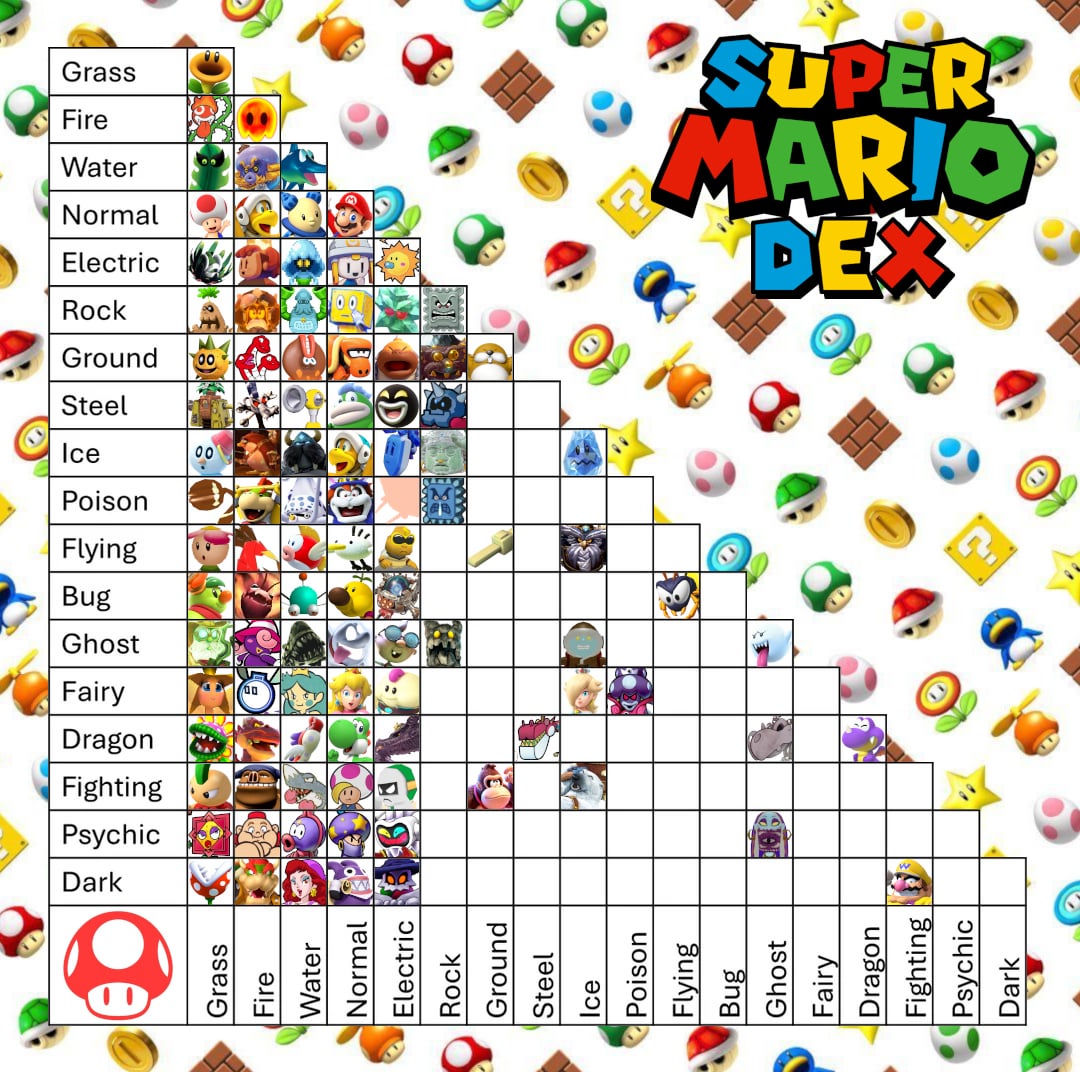 REMINDER: While I'm allowing multiple variants of the same species, I encourage everyone to try to be as unique with your choices as you can. Mario has a large character roaster, and I would love for this chart to represent that in some capacity.