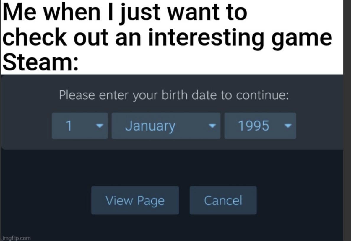 Deka-92 on April 5, 2026 3:22 am Considering my first Steam purchase was in 2011 or something, I think Steam should be able to extrapolate that I’m an adult.