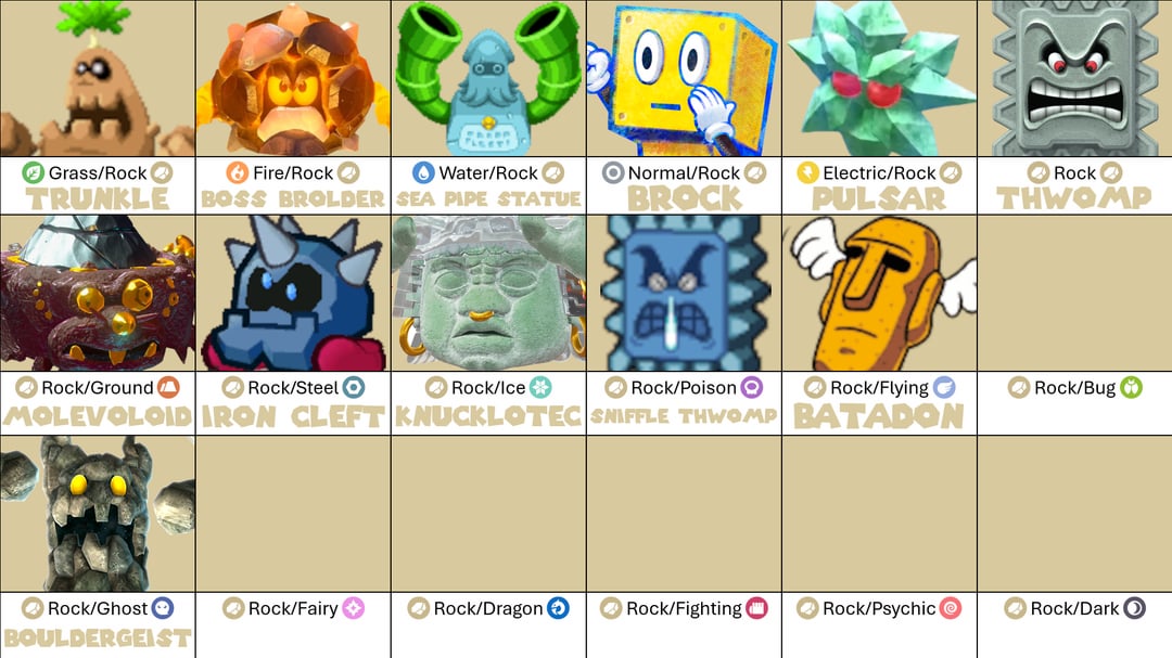 Upvote this comment to keep Bouldergeist as our ROCK/GHOST type, or reply with/upvote another character to replace it. Whoever gets the most upvotes on this thread wins for ROCK/GHOST.