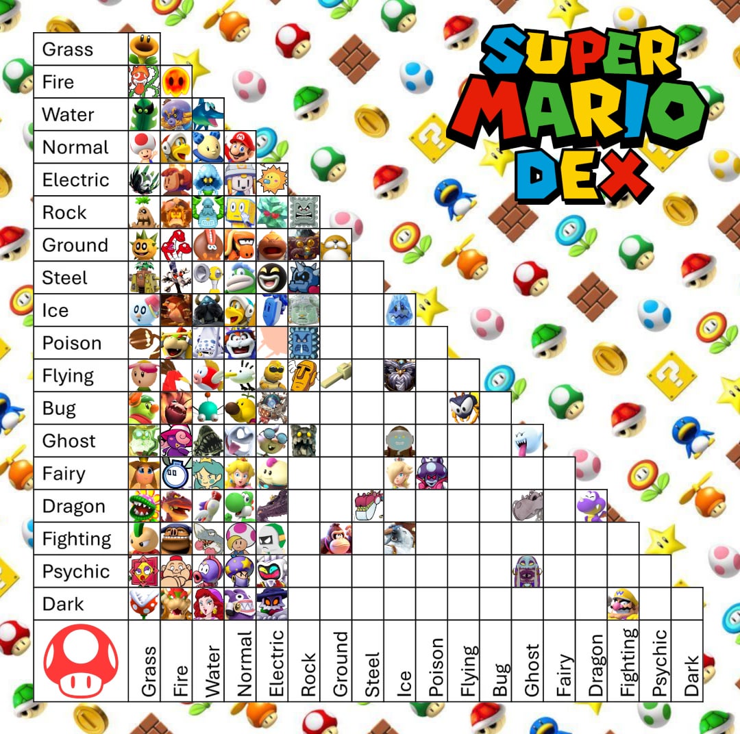 REMINDER: While I'm allowing multiple variants of the same species, I encourage everyone to try to be as unique with your choices as you can. Mario has a large character roaster, and I would love for this chart to represent that in some capacity.