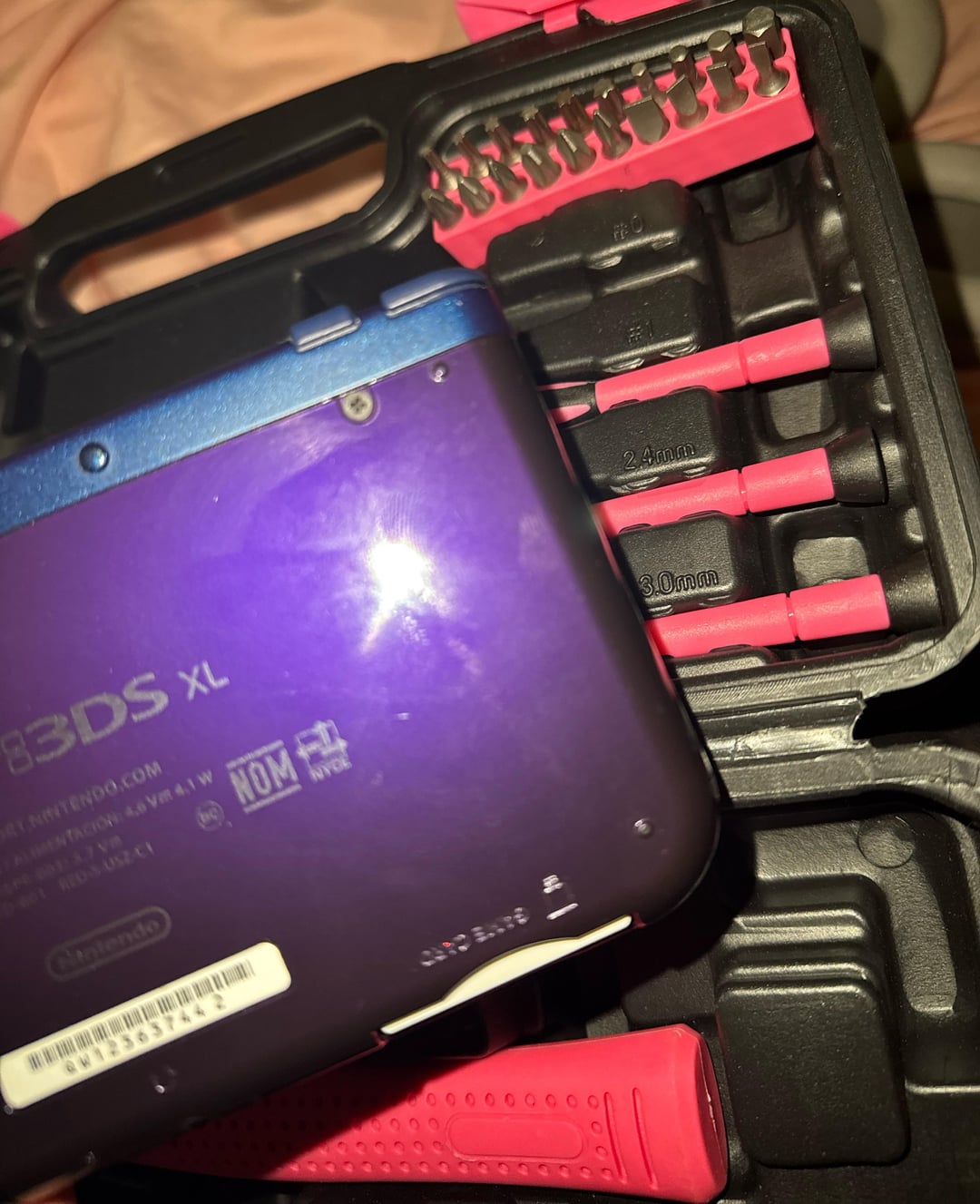 Picture is super blurry but I usually put a piece of painters tape( the blue tape ) around the screw holes, and slowly push, then twist off the screw and they come out without being stripped. Good luck to you!
