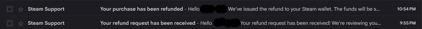 The steam quickly refunded my purchase in less than an hour!