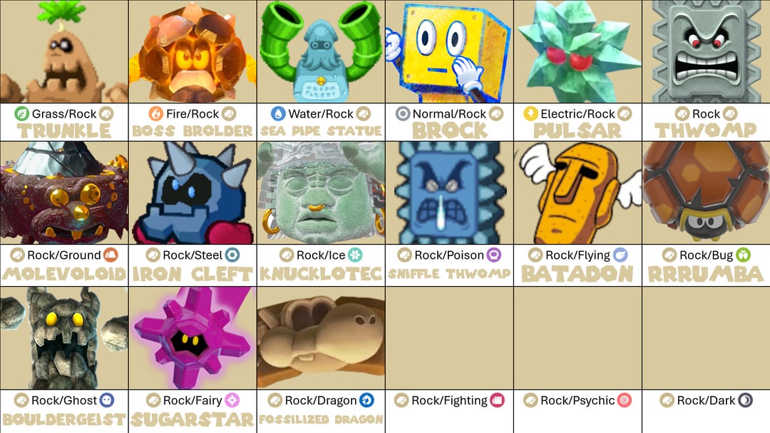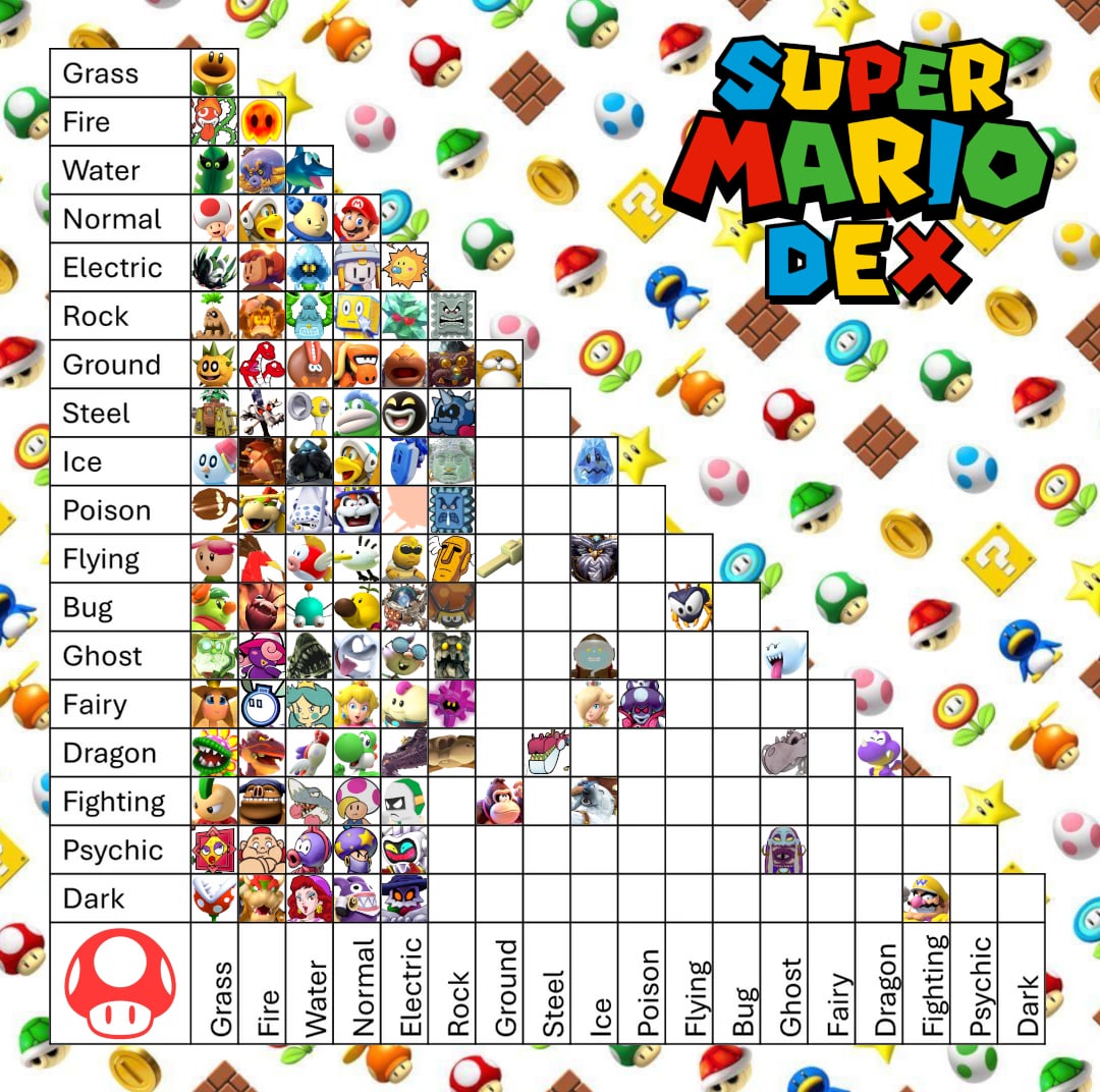REMINDER: While I'm allowing multiple variants of the same species, I encourage everyone to try to be as unique with your choices as you can. Mario has a large character roaster, and I would love for this chart to represent that in some capacity.
