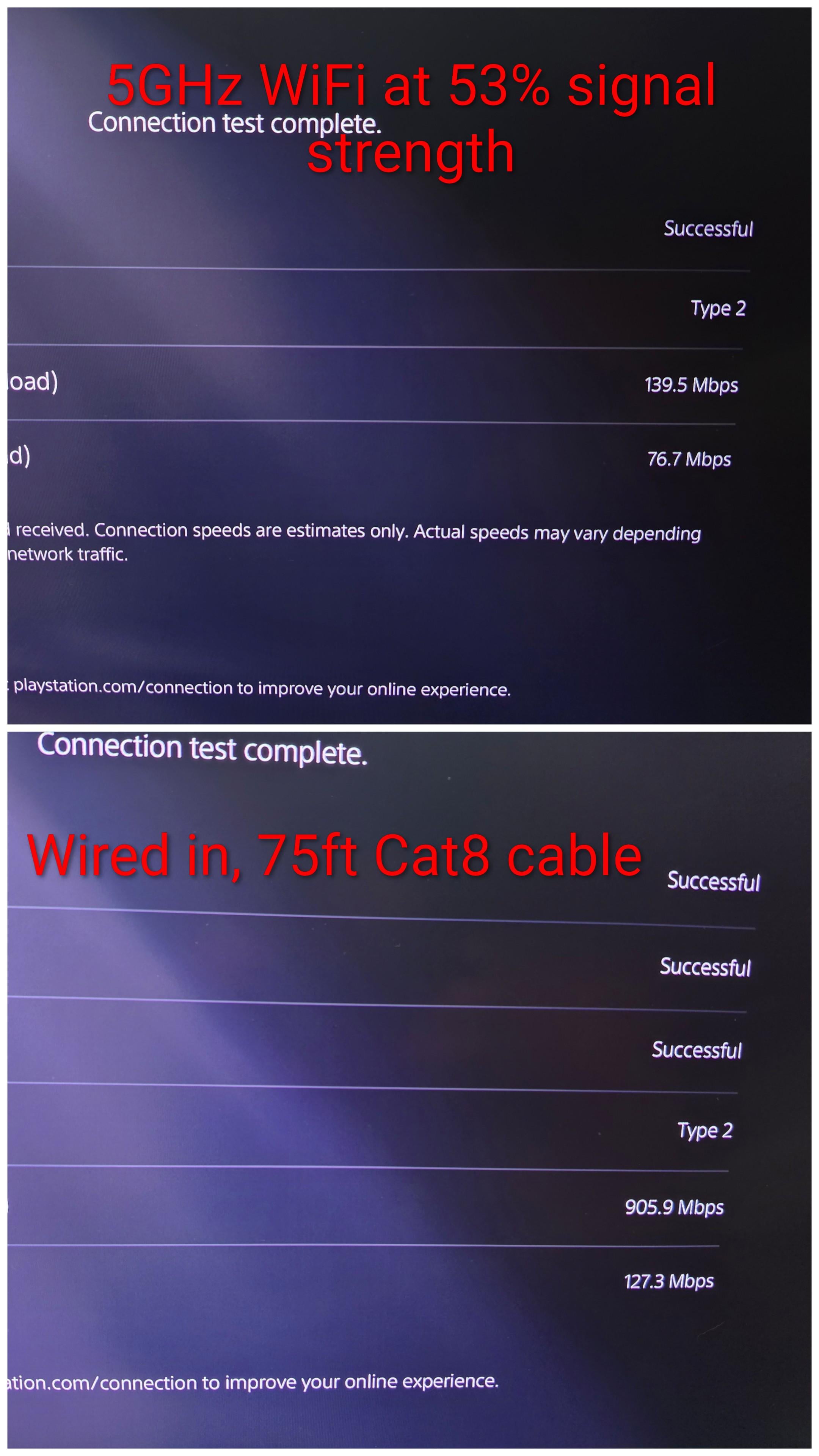 I had to move my PS5 downstairs to my desk with a monitor to make space for my son's toys in the living room when he became a toddler last year. The modem/router is wired into the living room and I've been living with wifi this whole time, but I'm back on that wired connection and it feels good.