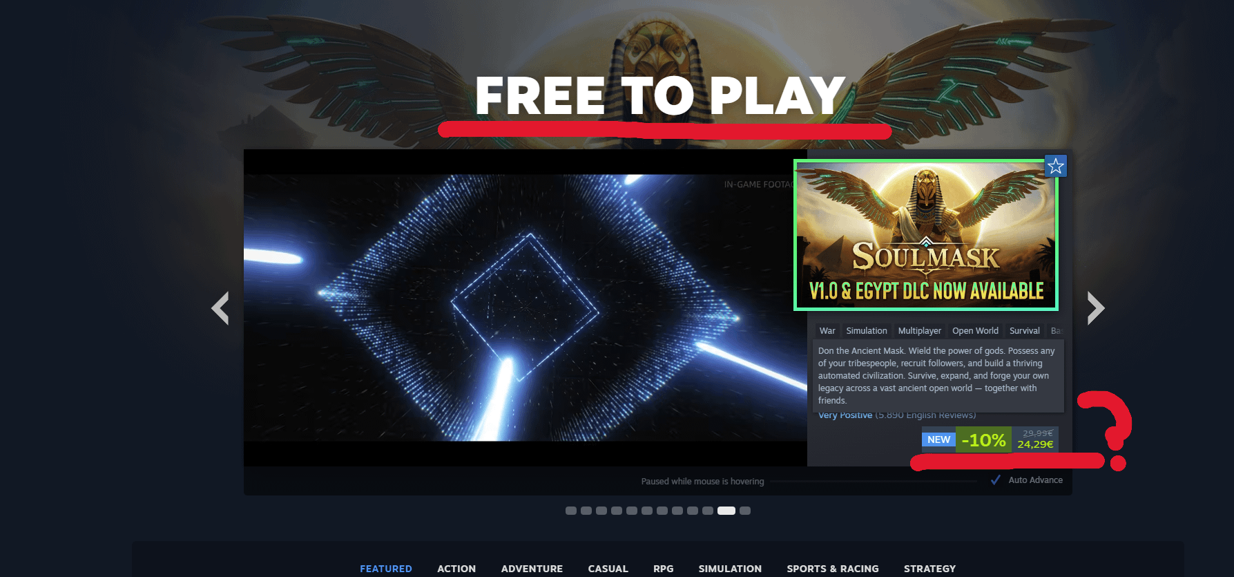 2. Probably a related issue to that game specifically. Soulmask recently released it’s Egypt DLC with it being free to game owners for the first months of the DLC launch. I won’t pretend to understand how Valve tags games but can only guess it’s from that.