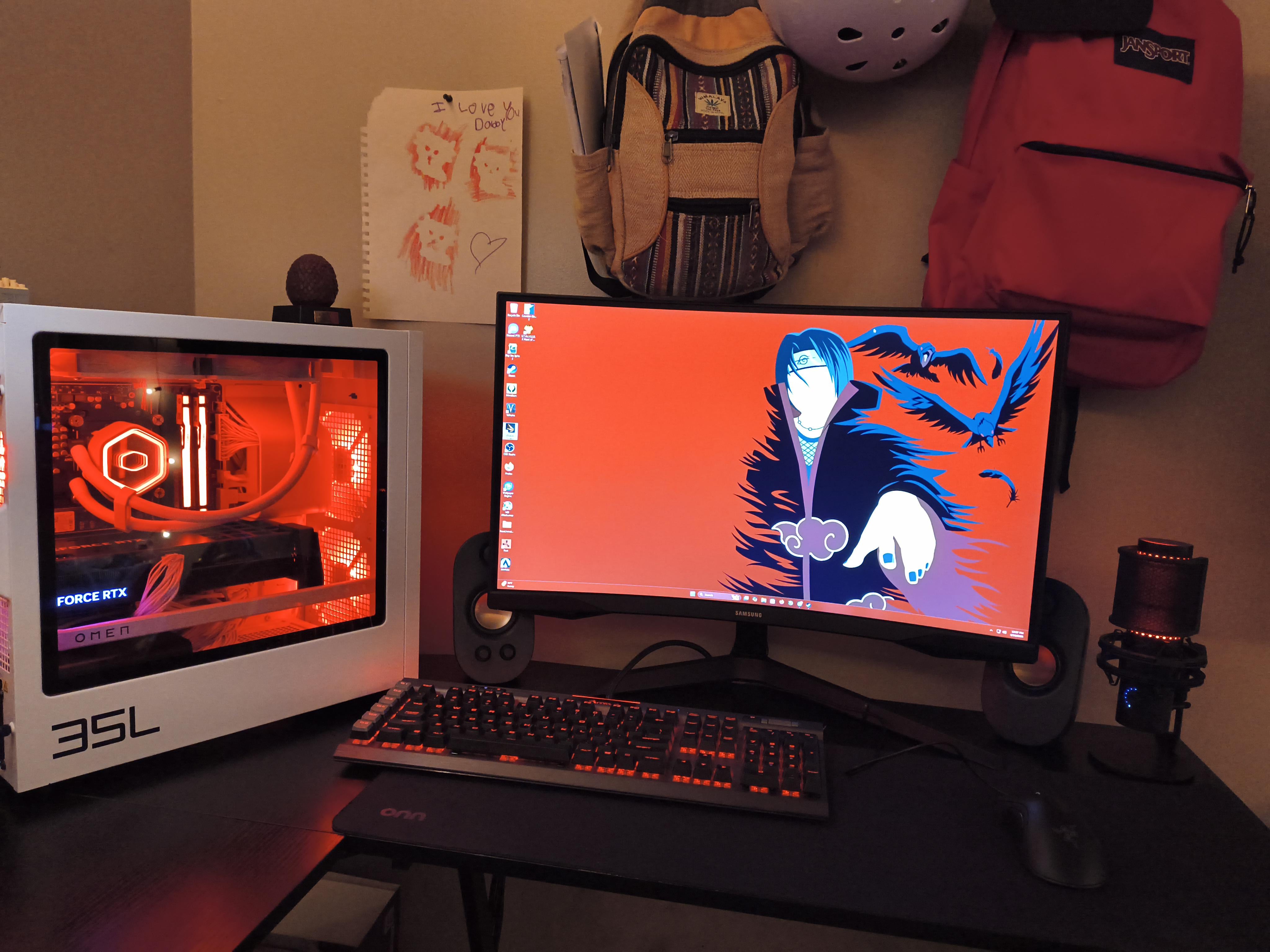 PC is an HP omen 35L GT16-0364 with an aftermarket aio. This is my first attempt at cable management. definitely not perfect. I also have plans to de-Omen my PC but it was a great deal so I don't mind dealing with pre built nonsense for a while.