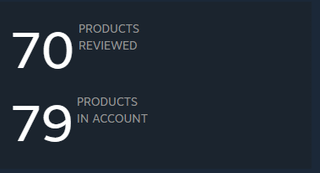 Products in Account says 79 in the Reviews sections but 83 in the All Games section. Hidden games and demos don't seem to change the number. If the Half-Life Deathmatches don't count (do they?) because they are tired to Half-Life 2 that still leaves two in the All Games section.