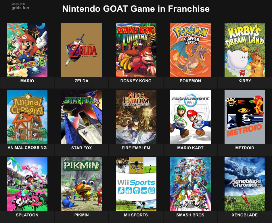 This is good, but I think SoulSilver was the peak of Pokemon. Also, New Leaf would be better. Maybe Melee for Smash?
