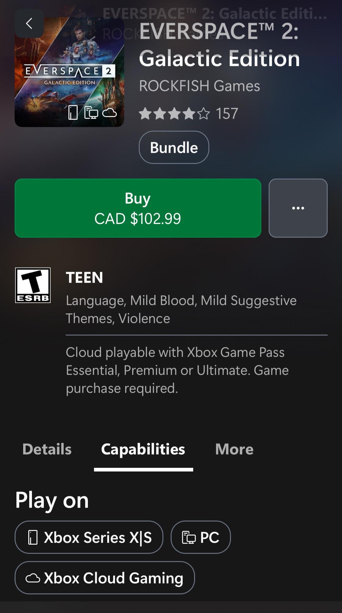 Some times **bundles with DLCs**, in this case “EVERSPACE™ 2: **Galactic Edition**” doesn’t has Xbox Play Anywhere tag so it can confusing.
