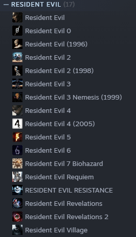 You’re missing Re;Verse and Operation Racoon City (from the currently available on steam Resident Evil games that is).