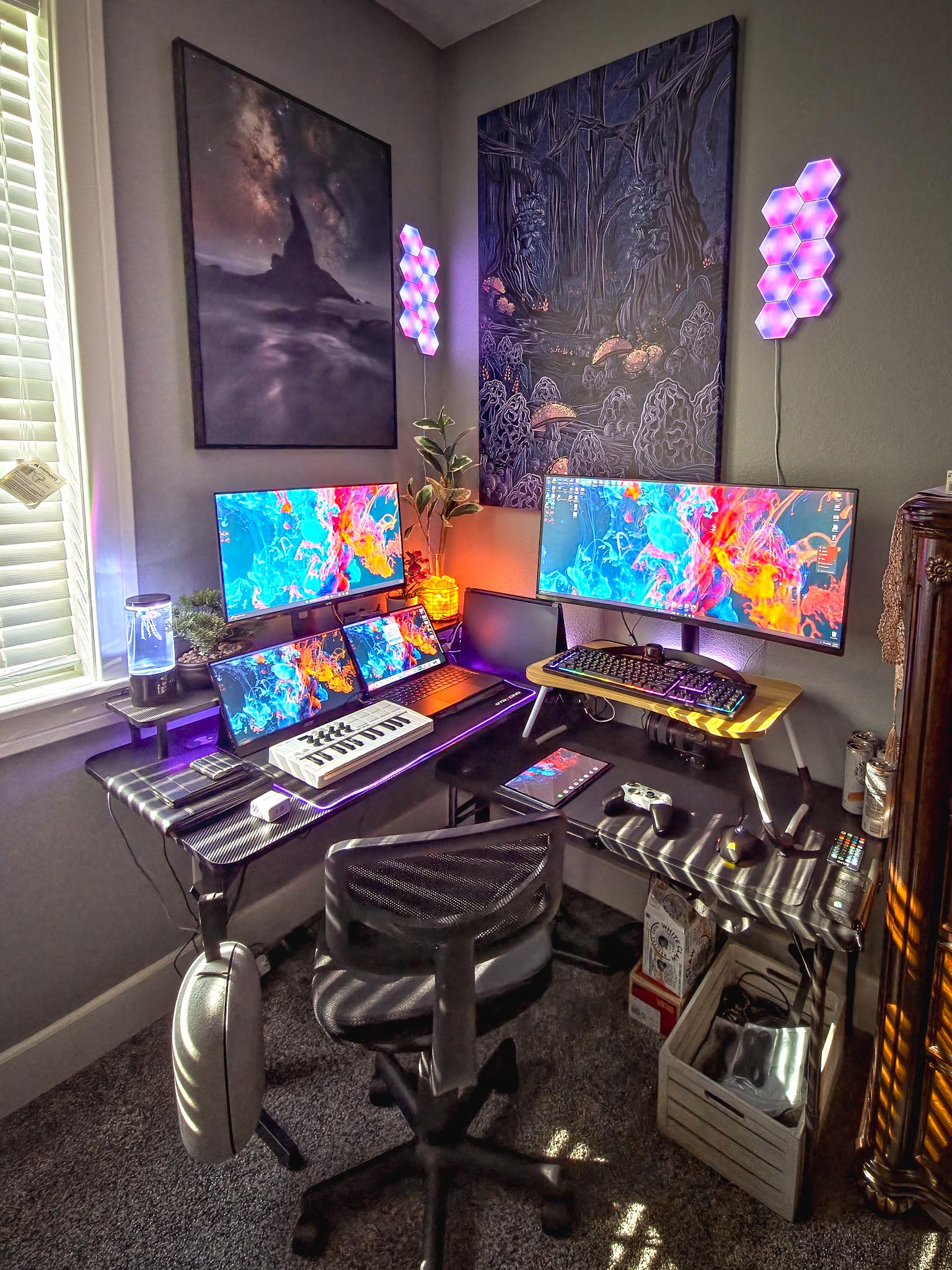 a couple pieces of my art and just a laptop setup but it gets the job done. don't have the energy to bring my pc build here.