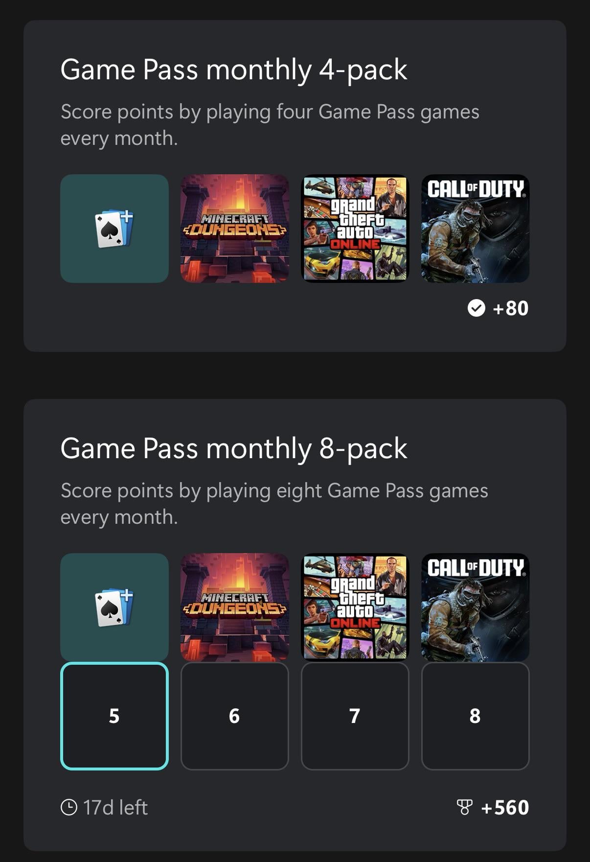 unsubscribe, man. If those were the only games I play. I would have unsubscribe a long time ago.. and rewards are cool, but you don’t need Gamepass to collect rewards. You get lots of them through bing searches anyways